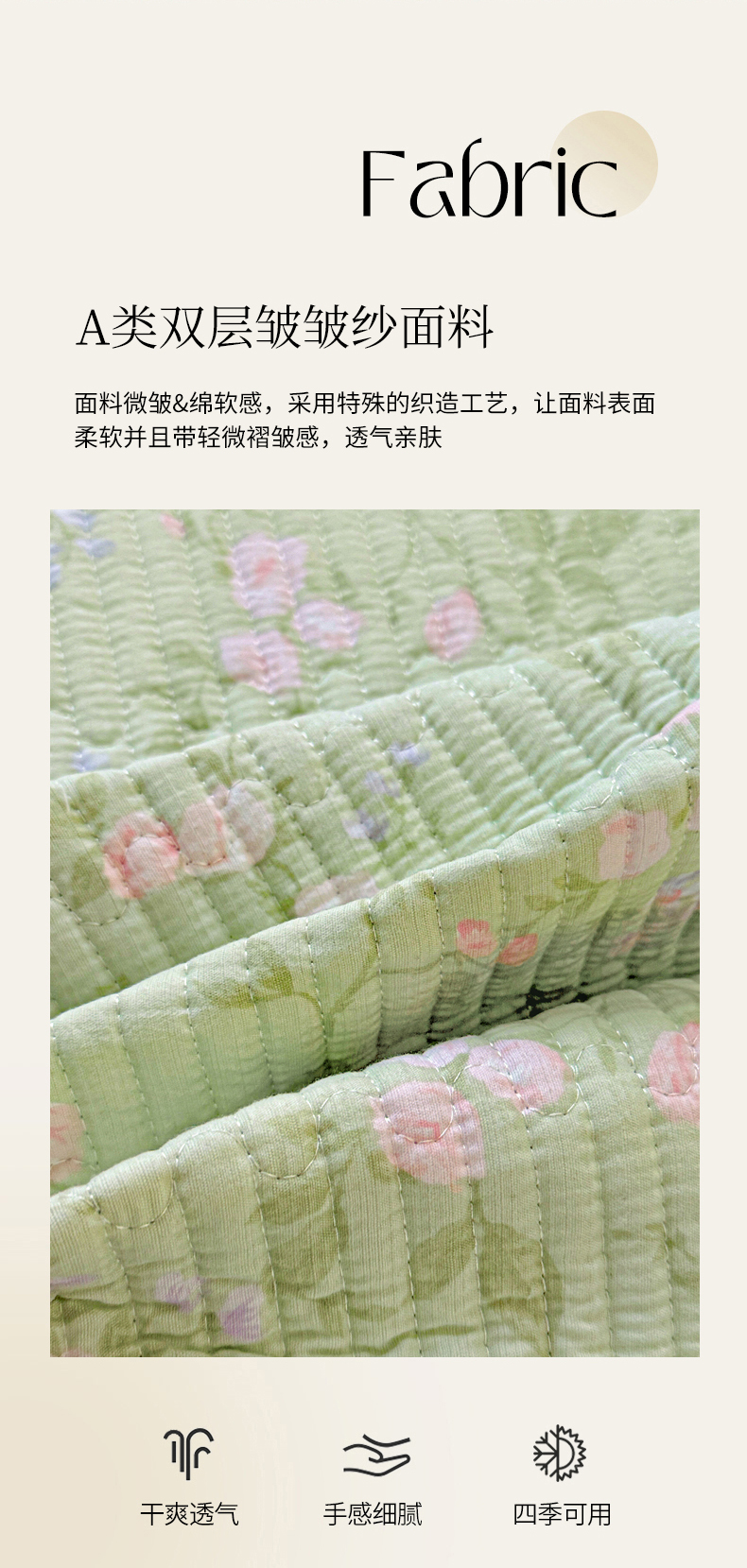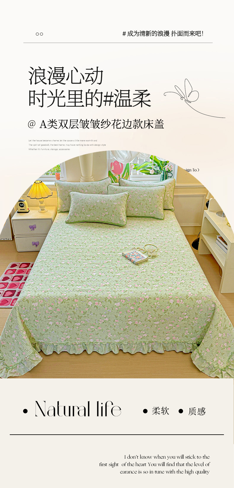 • 91家纺网 家纺一手货源 找家纺 恒尚居 2026新款云感皱皱纱床盖花边床单双层纱床盖三件套-四季款 花边款-美丽心情