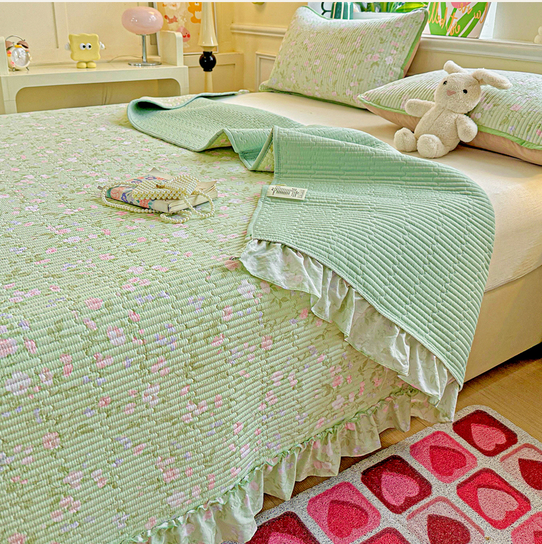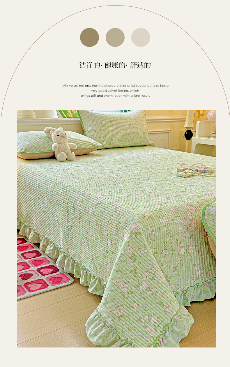 当前位置: 91家纺网 > 商品网购 > 床上用品 > 床盖 > 恒尚居 2026新款云感皱皱纱床盖花边床单双层纱床盖三件套-四季款 花边款-美丽心情