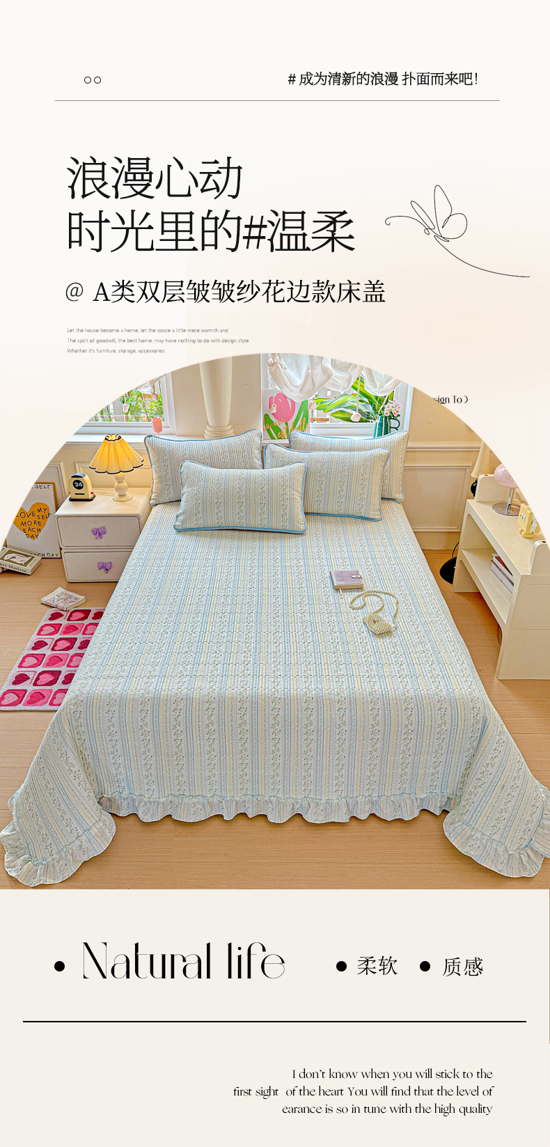 当前位置: 91家纺网 > 商品网购 > 床上用品 > 床盖 > 恒尚居 2026新款云感皱皱纱床盖花边床单双层纱床盖三件套-四季款 花边款-阳光庄园