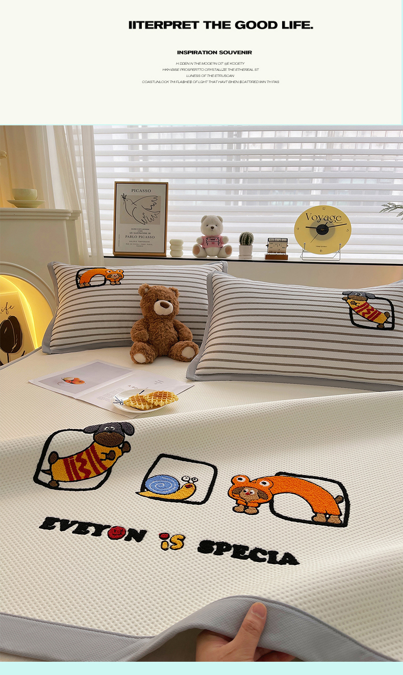 商品名称:(总)炫拼家纺 2026新款A类满天星凉豆豆卡通毛巾绣大包边复合凉席