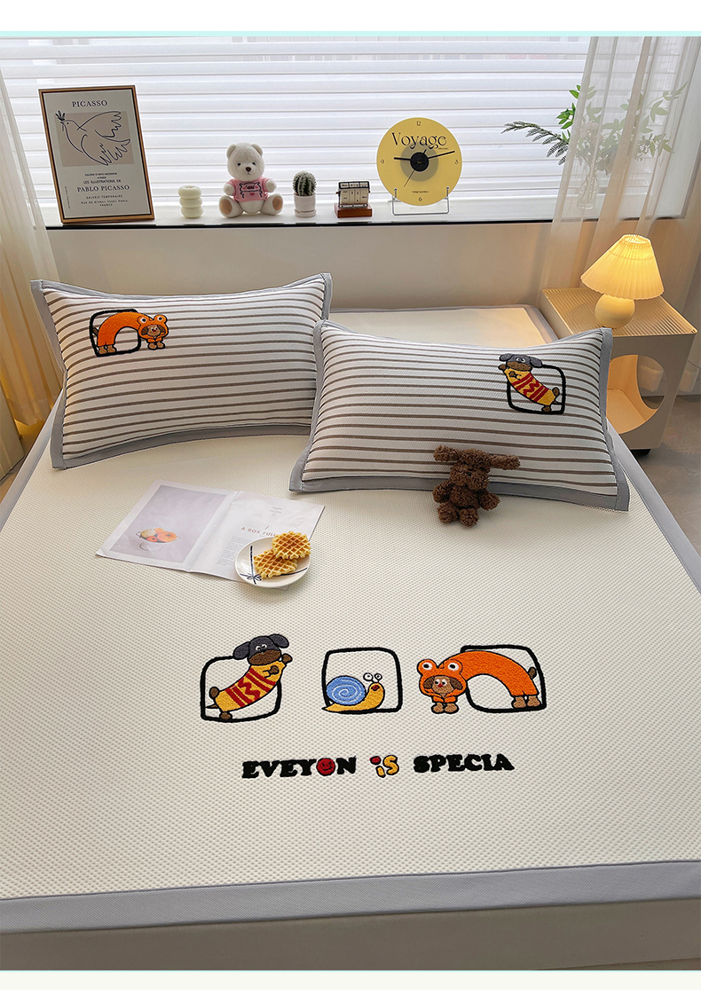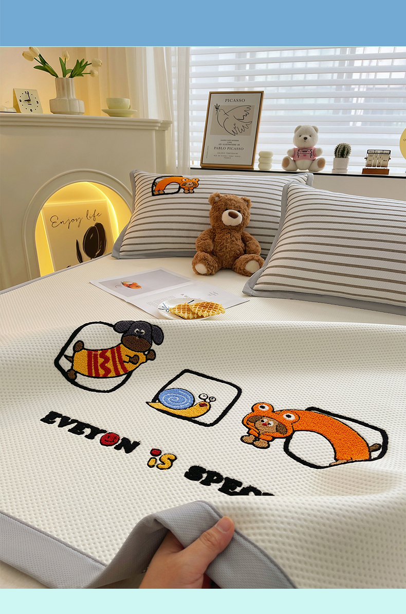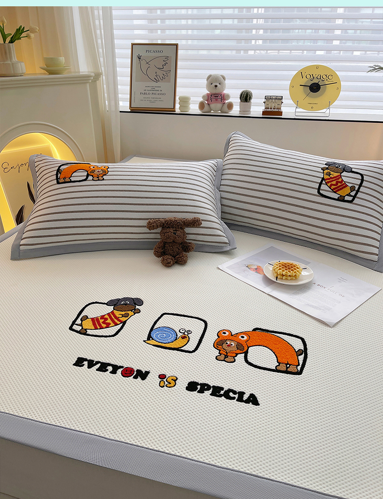 (总)炫拼家纺 2026新款A类凉豆豆提花条纹卡通刺绣床笠席,条纹-淘气猫,条纹-冰淇淋狗,条纹-趴趴睡,条纹-气泡女孩,条纹-小怪兽糖糖,条纹-元气卡皮,条纹-又混了一天