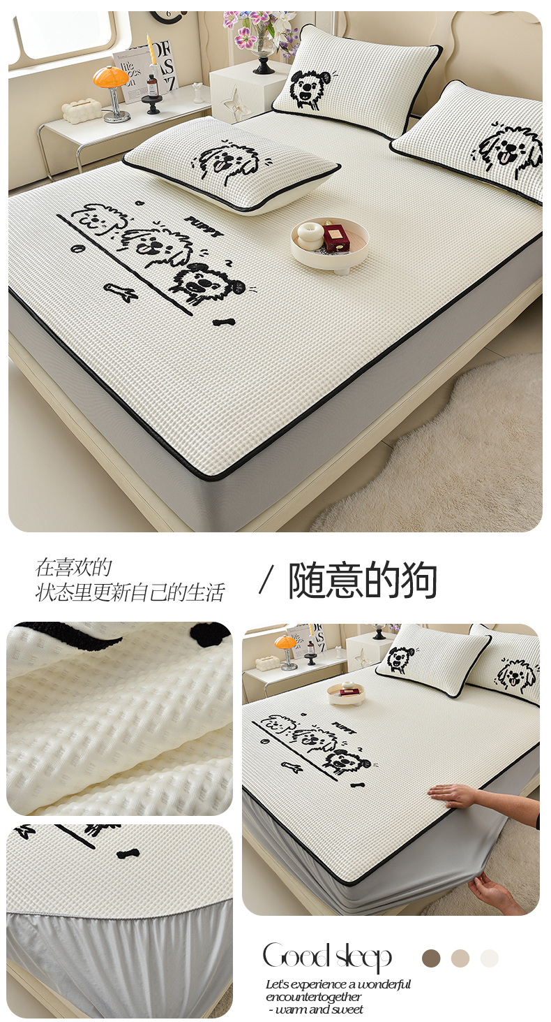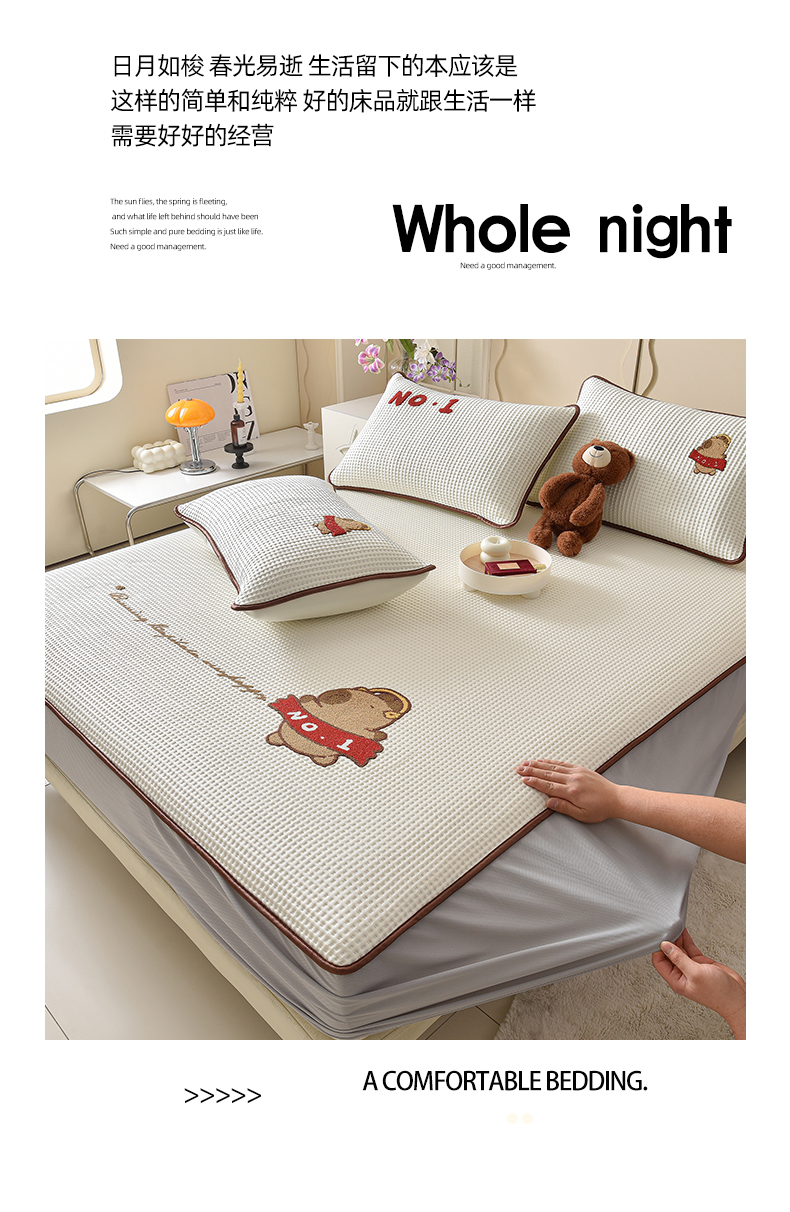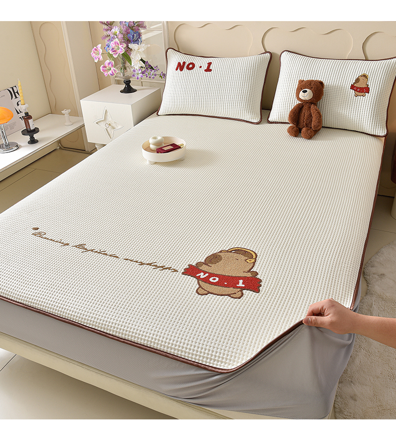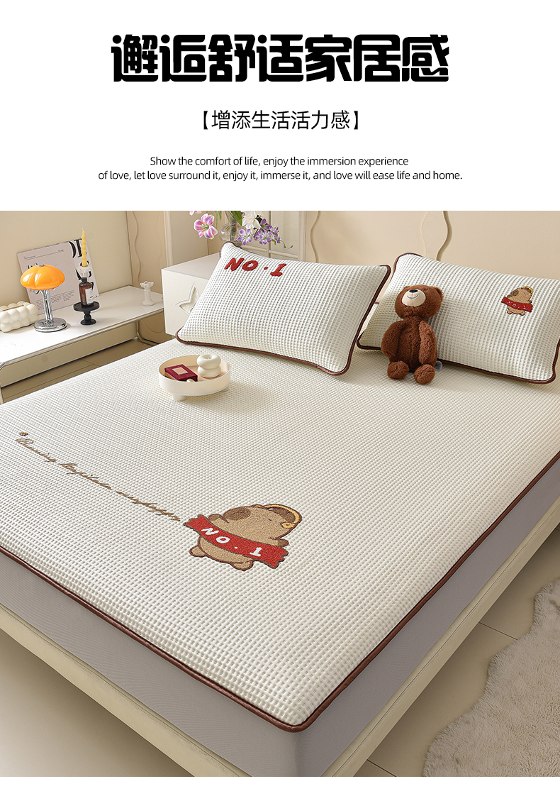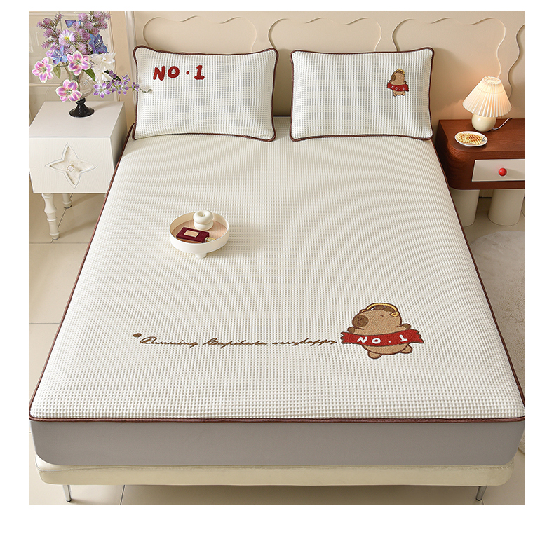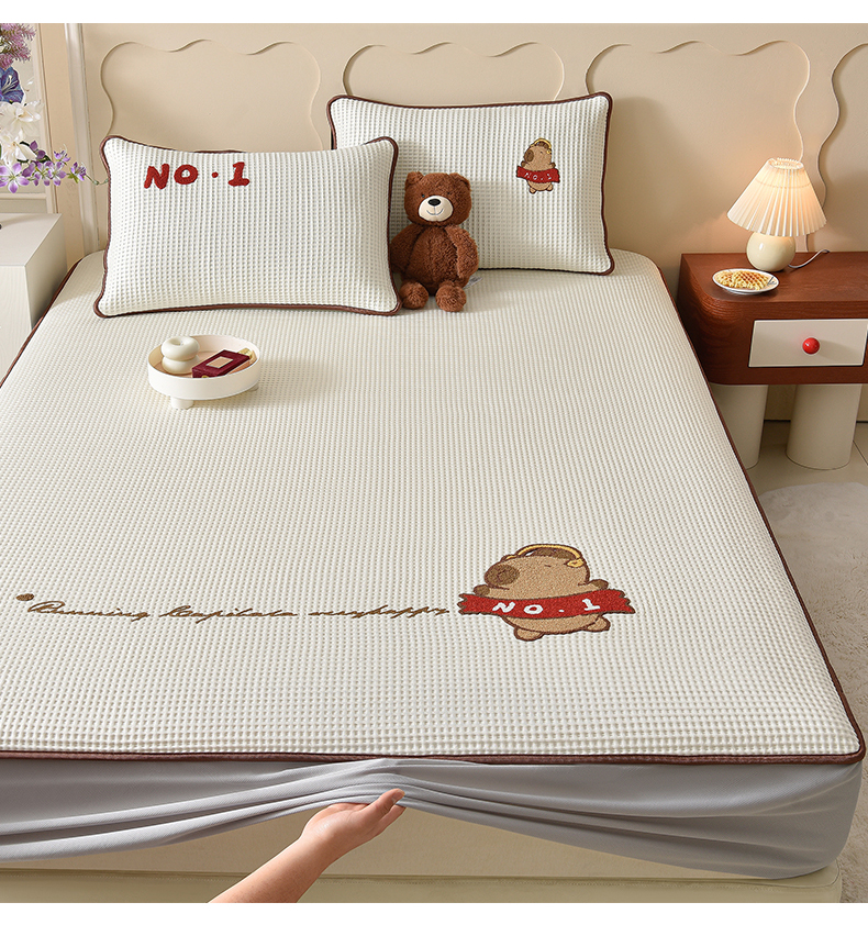 炫拼家纺 2026新款A类凉豆豆华夫格卡通绣花床笠席 快乐的卡皮