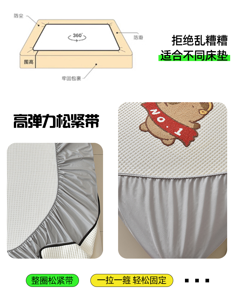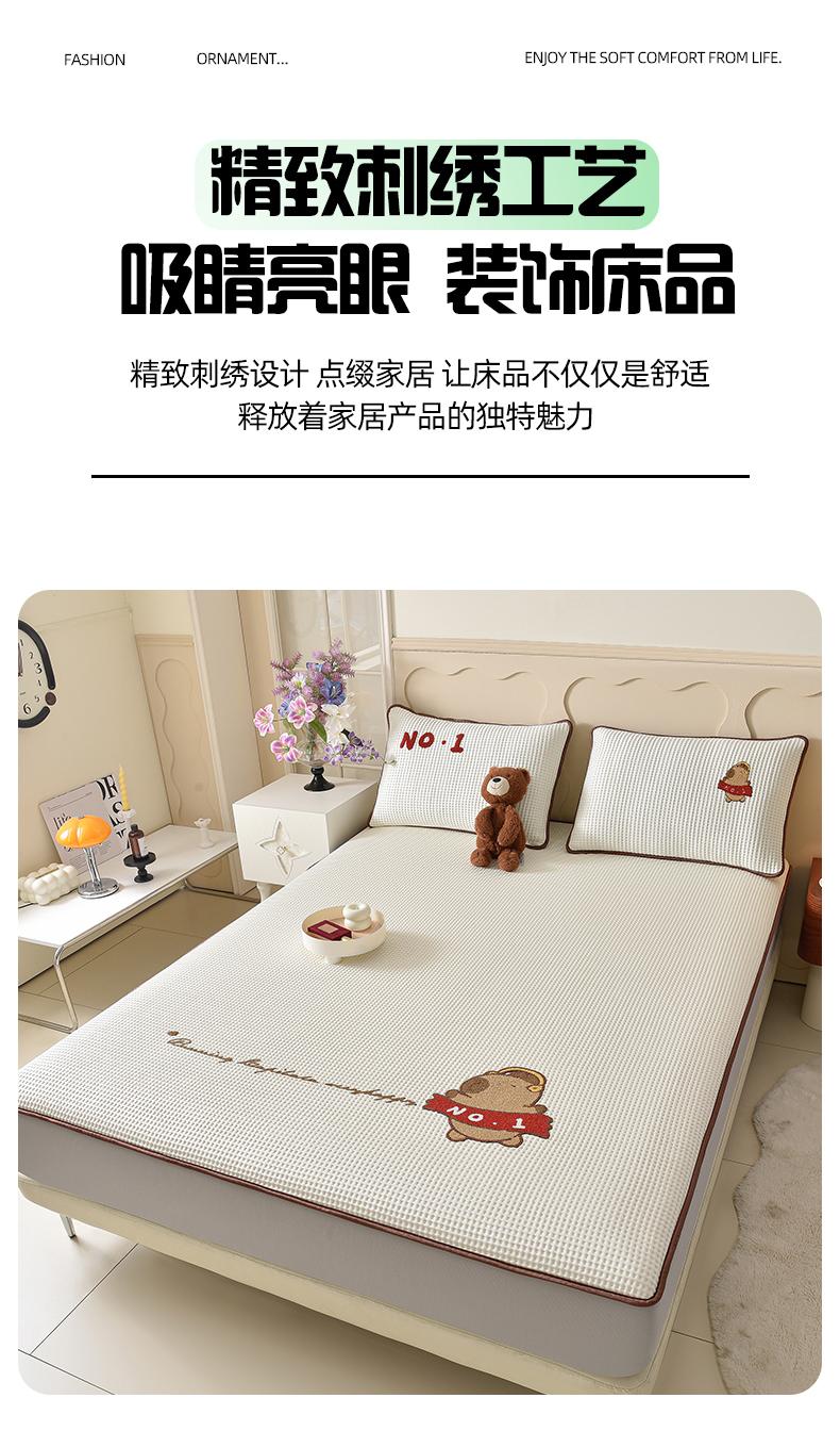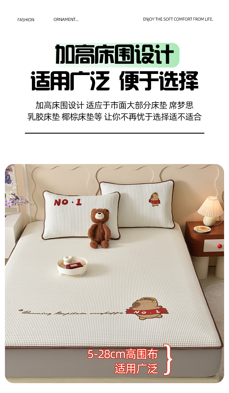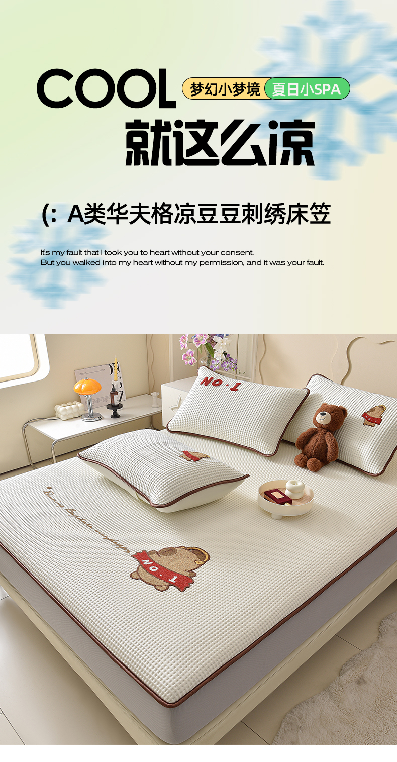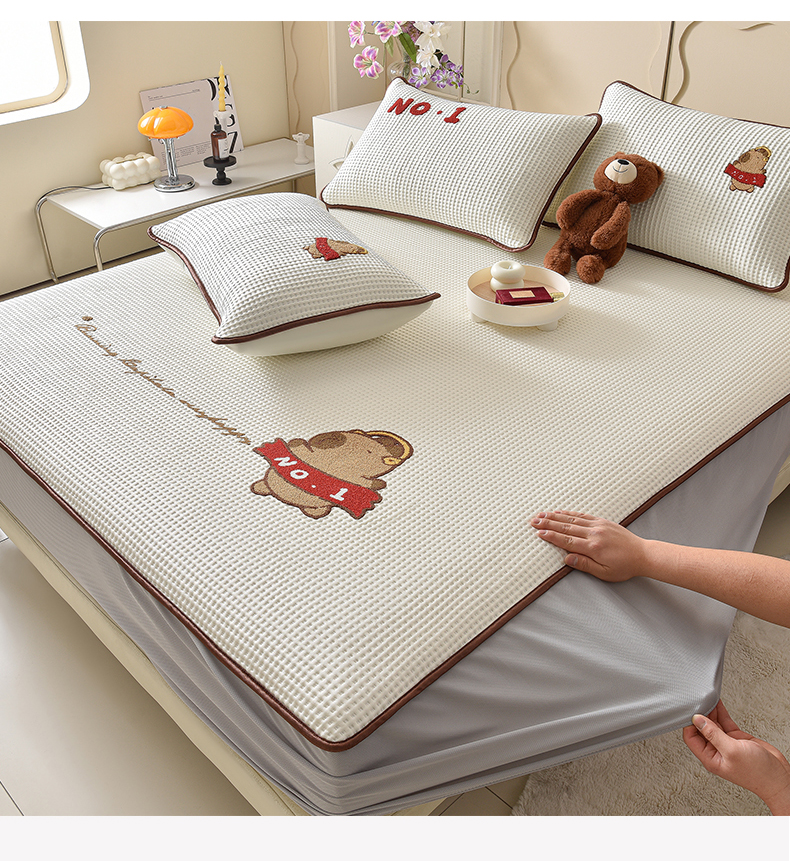 炫拼家纺 2026新款A类凉豆豆华夫格卡通绣花床笠席 快乐的卡皮