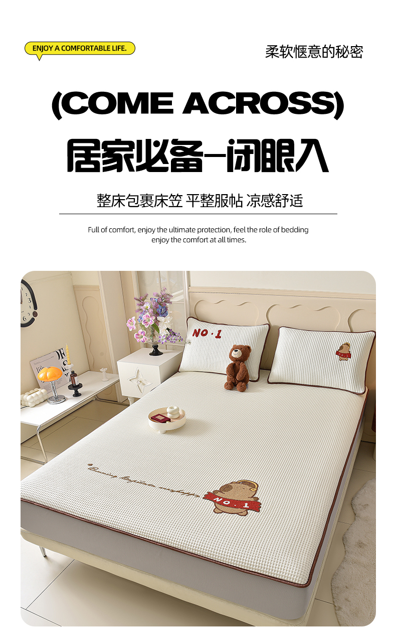 (总)炫拼家纺 2026新款coco熊床裙款乳胶凉席,coco熊-珍珠灰,coco熊-玉石白,coco熊-宾利蓝,coco熊-冰雪蓝,coco熊-香妃粉