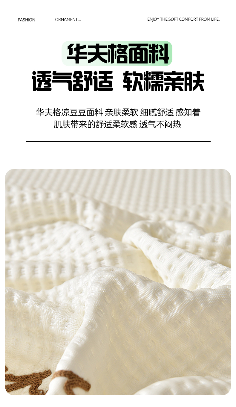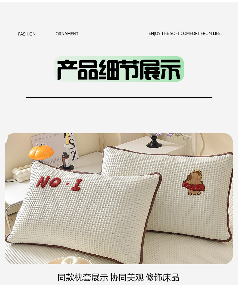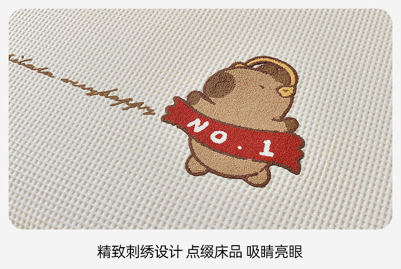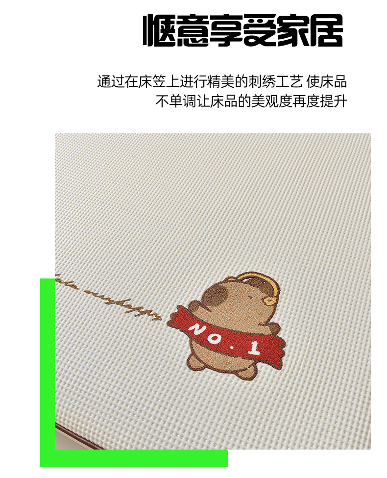 商品名称:炫拼家纺 2026新款A类凉豆豆华夫格卡通绣花床笠席 快乐的卡皮