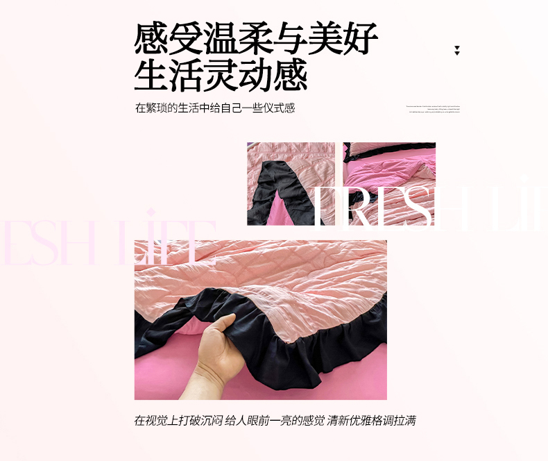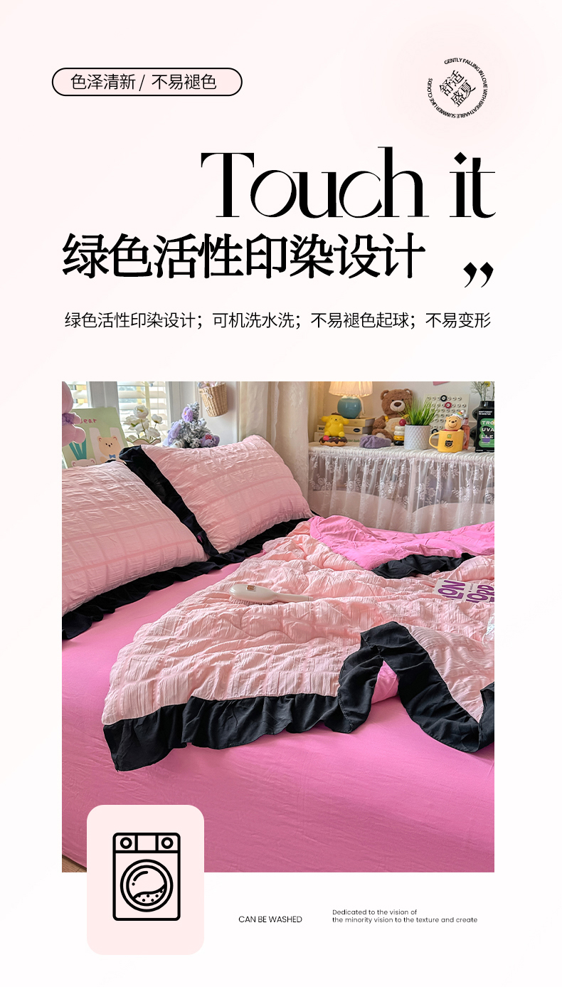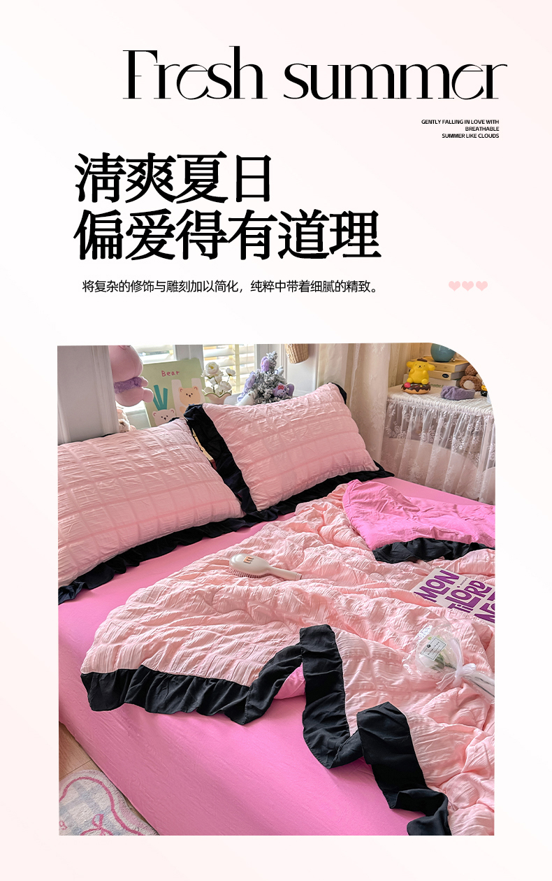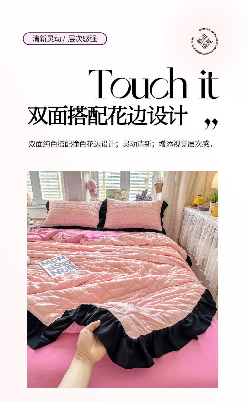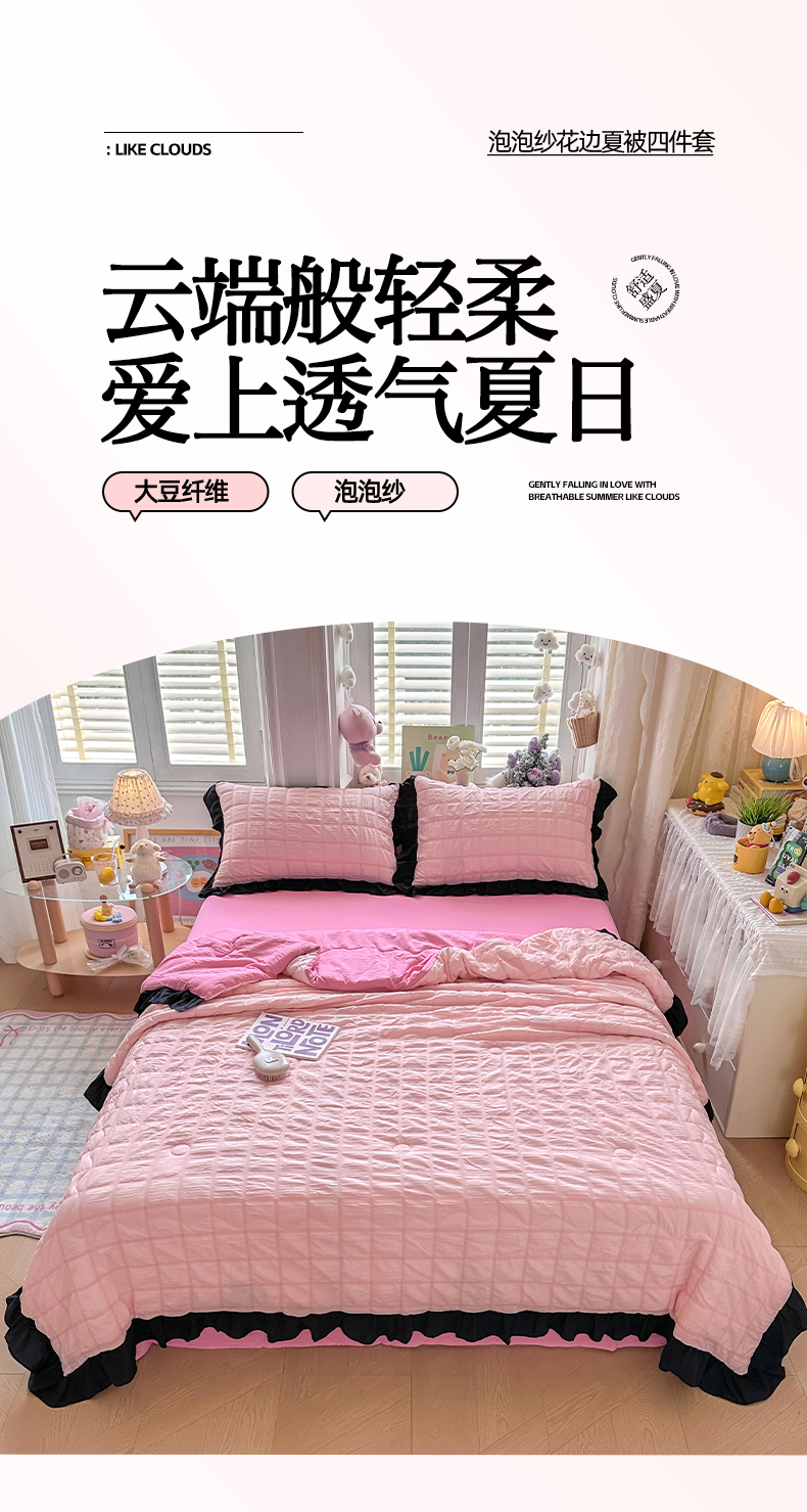 (总)优卡迪家纺馆 2026新款皱皱棉黑花边夏被四件套下载文件包含买家秀,雨蝶(花边款),紫苏(花边款),波点生活-粉(花边款),波点生活-绿(花边款),花园日记(花边款),泡沫之夏(花边款),午后甜梦(花边款),云影星斑-粉(花边款)