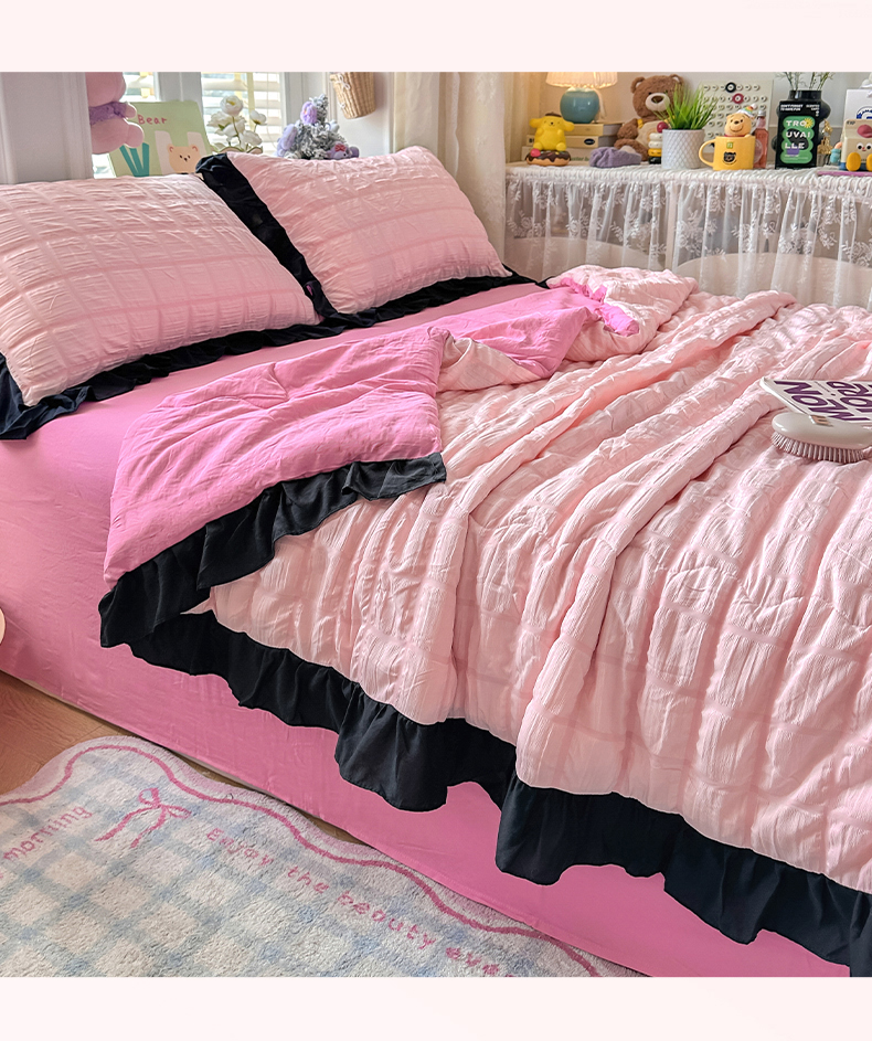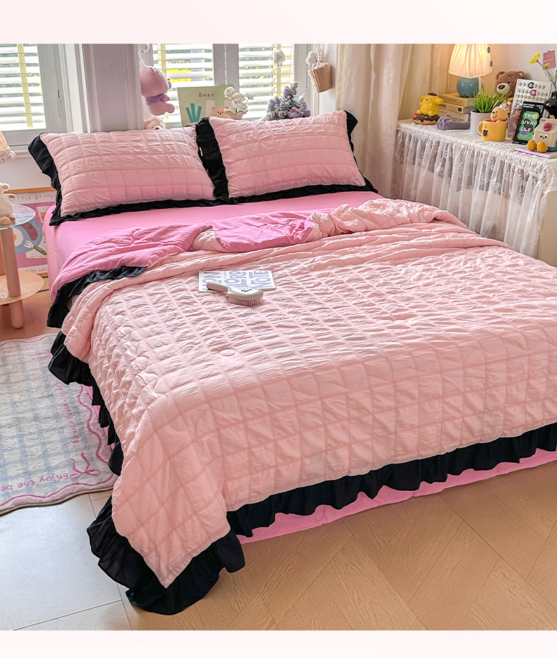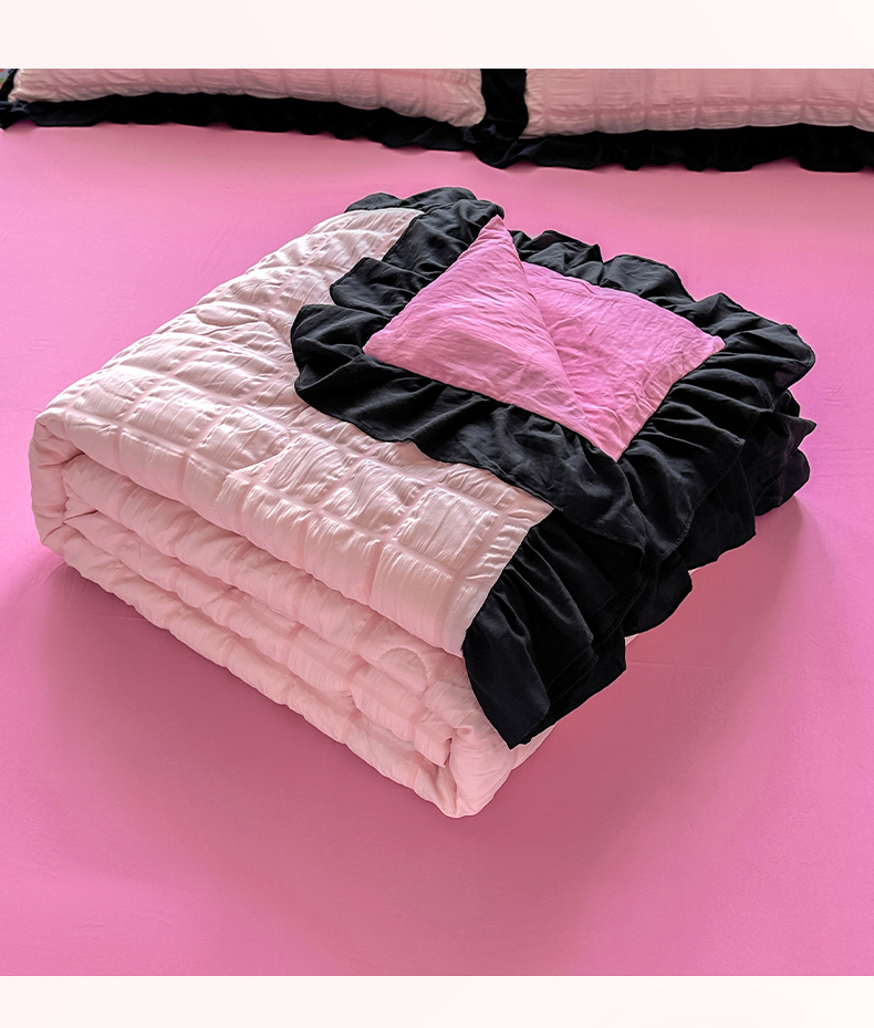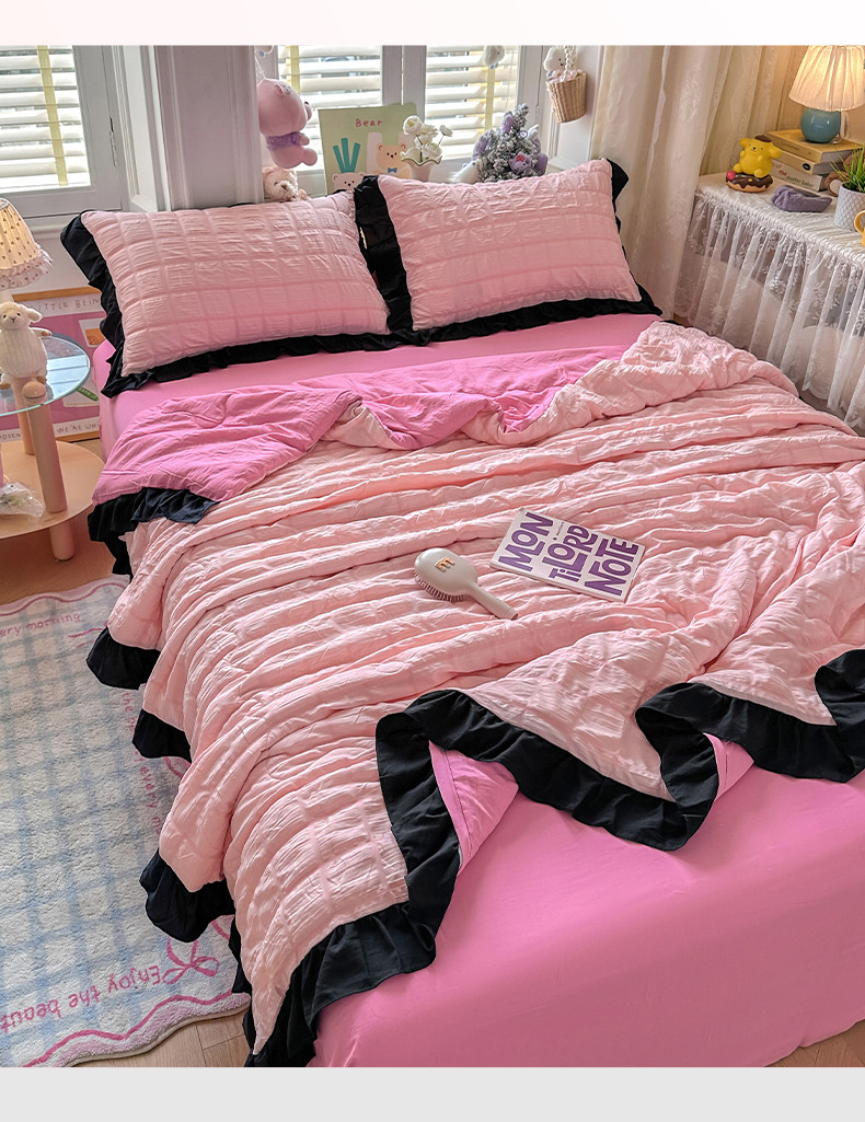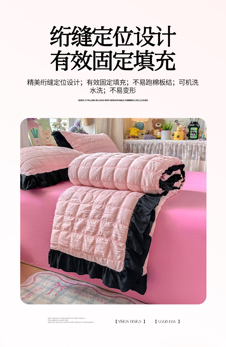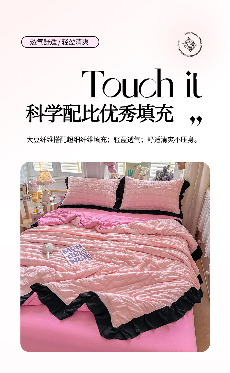 • 91家纺网 家纺一手货源 找家纺 优卡迪家纺馆 2026新款泡泡纱黑花边大豆夏被被子被芯下载文件包含买家秀 奶油蜜桃