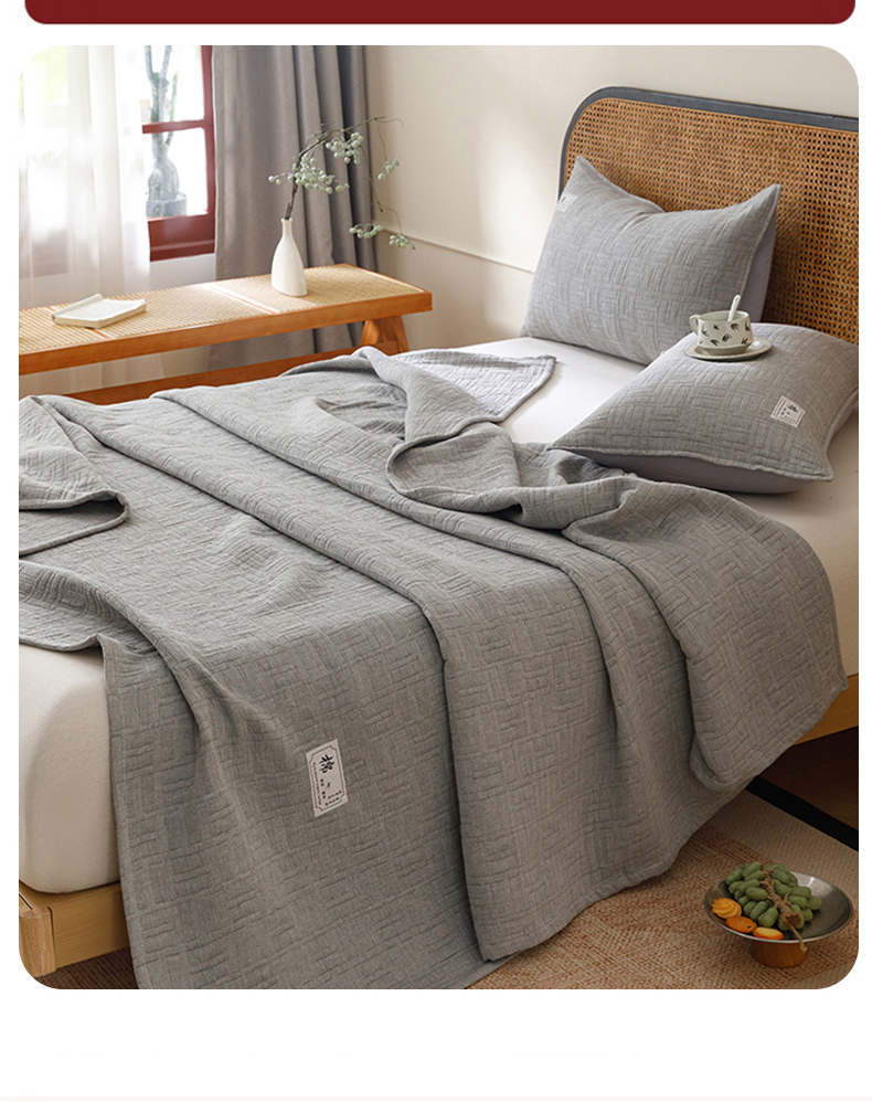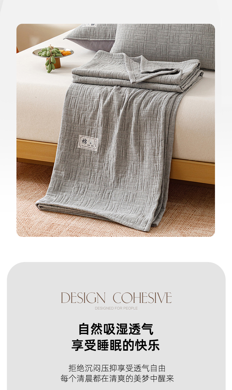 悦然毛巾被 2026新款素色提花全棉三层纱盖毯毛巾被A类休闲毯 原织灰