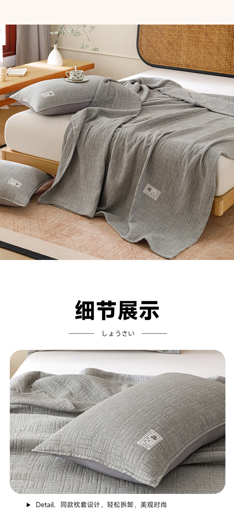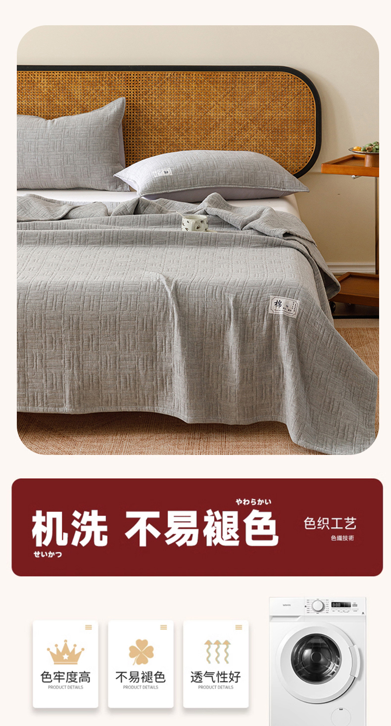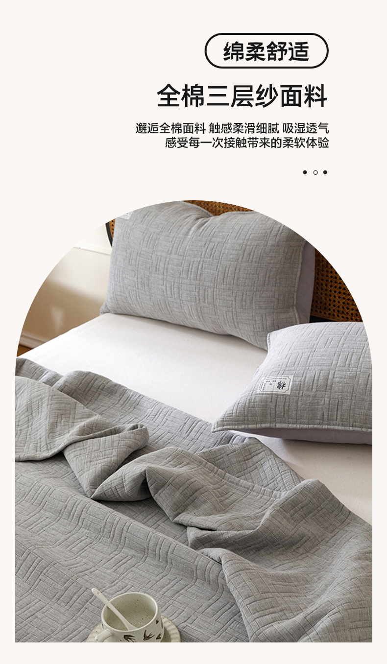 商品名称:悦然毛巾被 2026新款素色提花全棉三层纱盖毯毛巾被A类休闲毯 原织灰