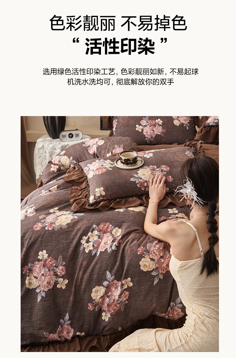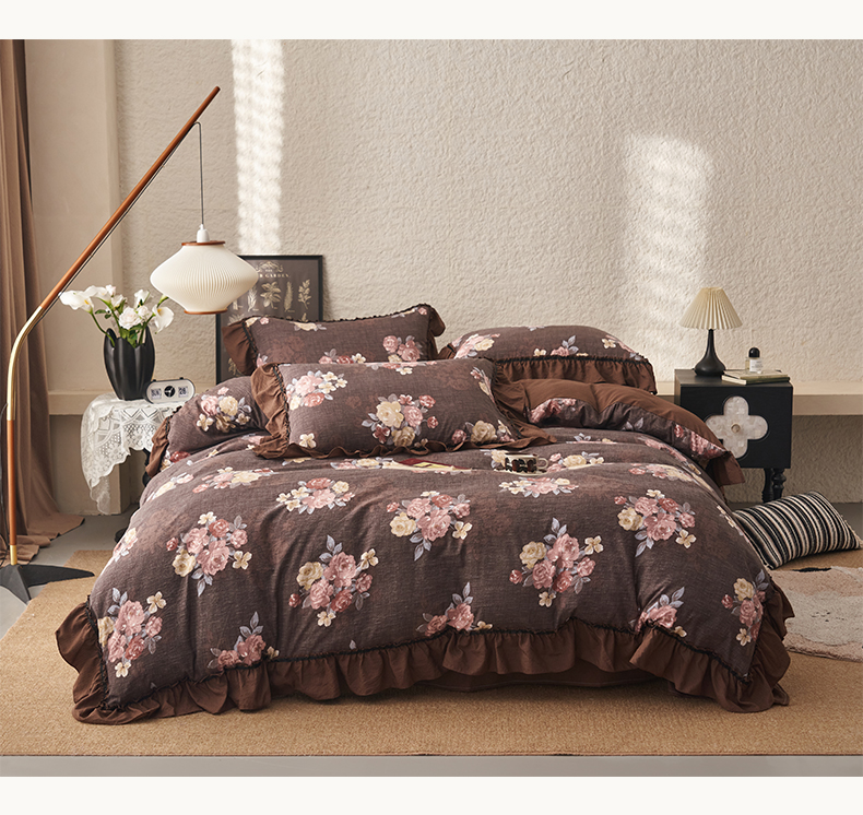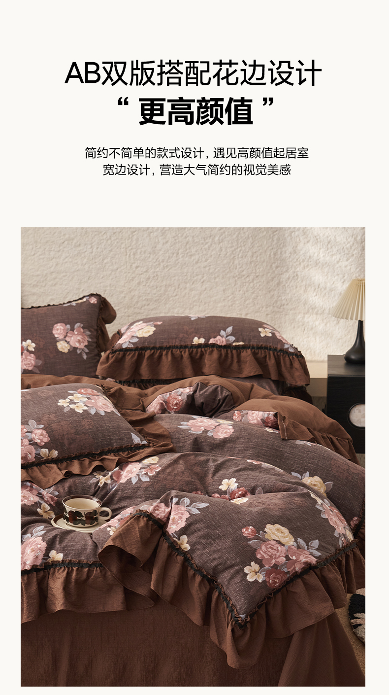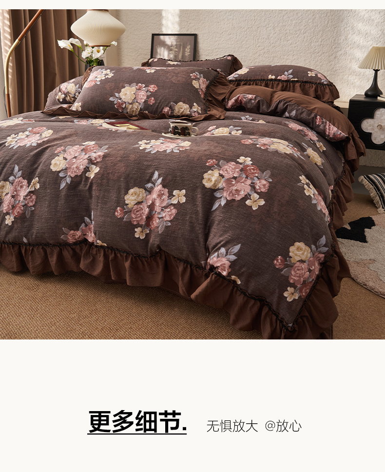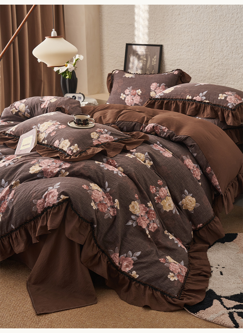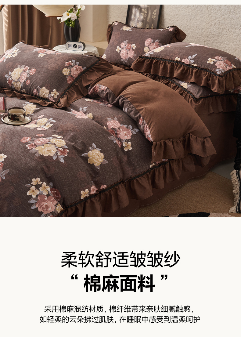 当前位置: 91家纺网 > 商品网购 > 床品套件 > 四件套 > 其它四件套 > 晨曦家纺 2026春夏新款复古博主风A类亚麻皱皱纱花边四件套 焦糖玫瑰园