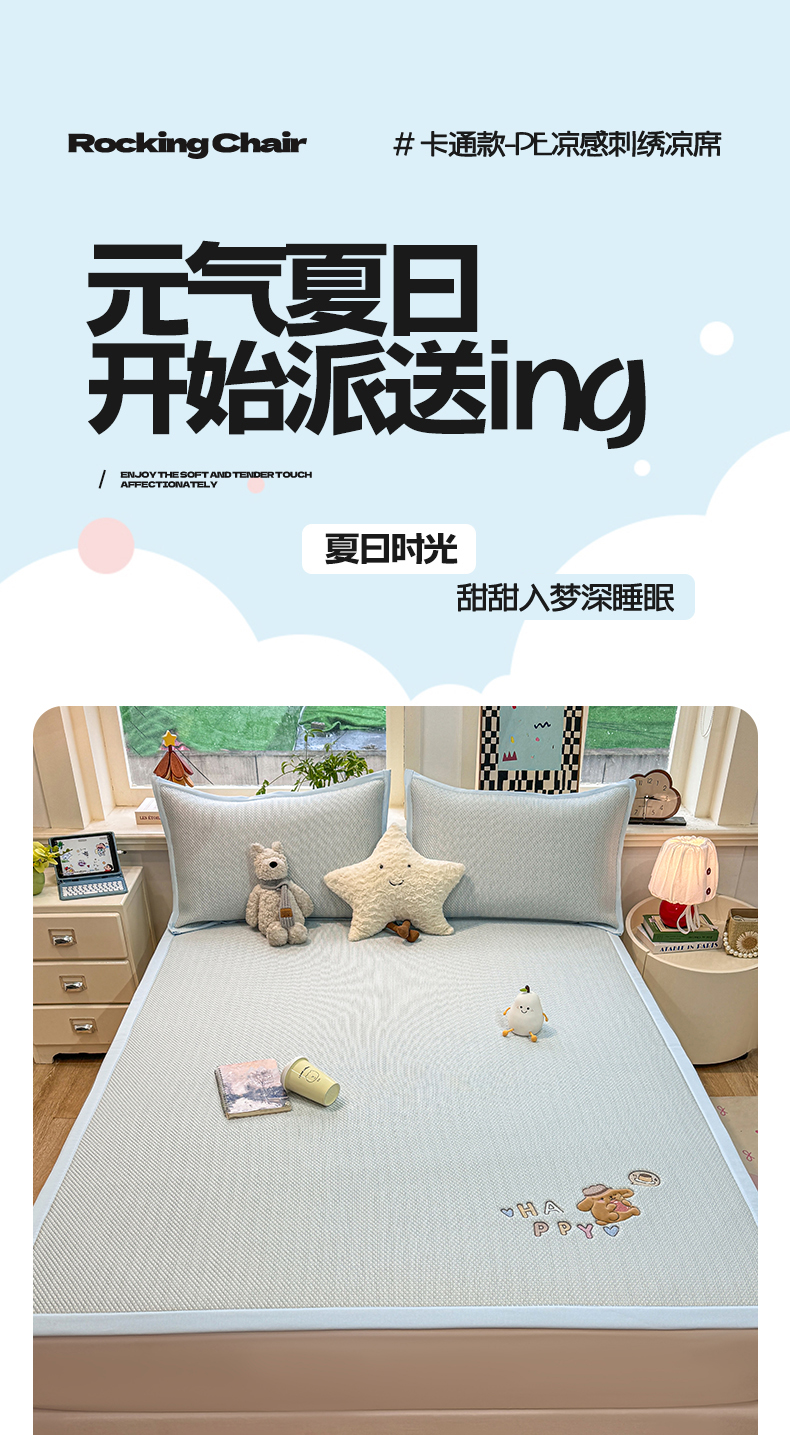 当前位置: 91家纺网 > 商品网购 > 床上用品 > 凉席 > 其他凉席 > 耐思家纺 2026新款A类复合三明治PE凉感卡通刺绣Happy熊-凉席款 Happy熊-蓝色