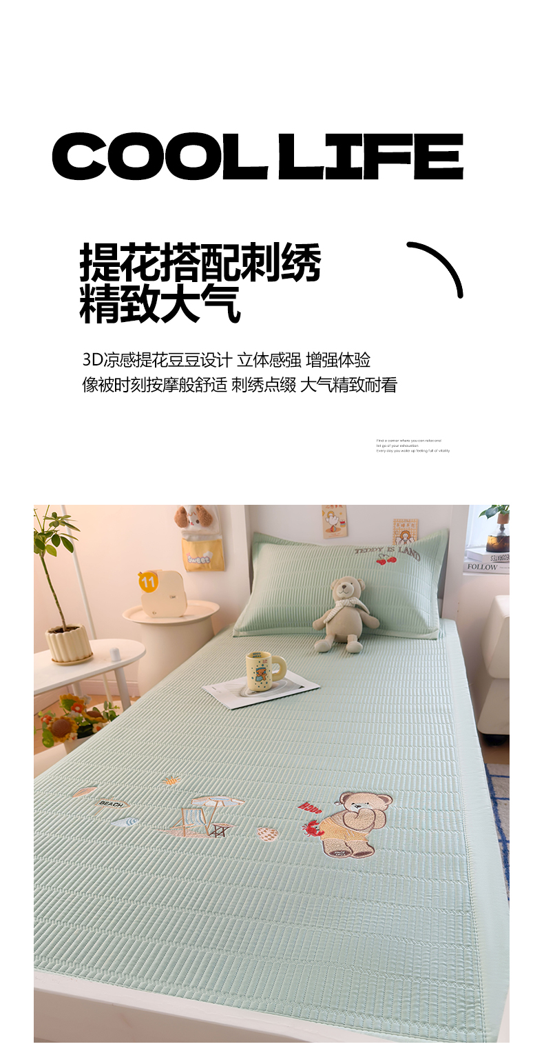当前位置: 91家纺网 > 商品网购 > 床上用品 > 凉席 > 其他凉席 > 耐思家纺 2026新款A类高端刺绣pe乙纶豆豆凉席泰迪爱兰系列正版授权(提供买家秀) 青屿熊语-绿