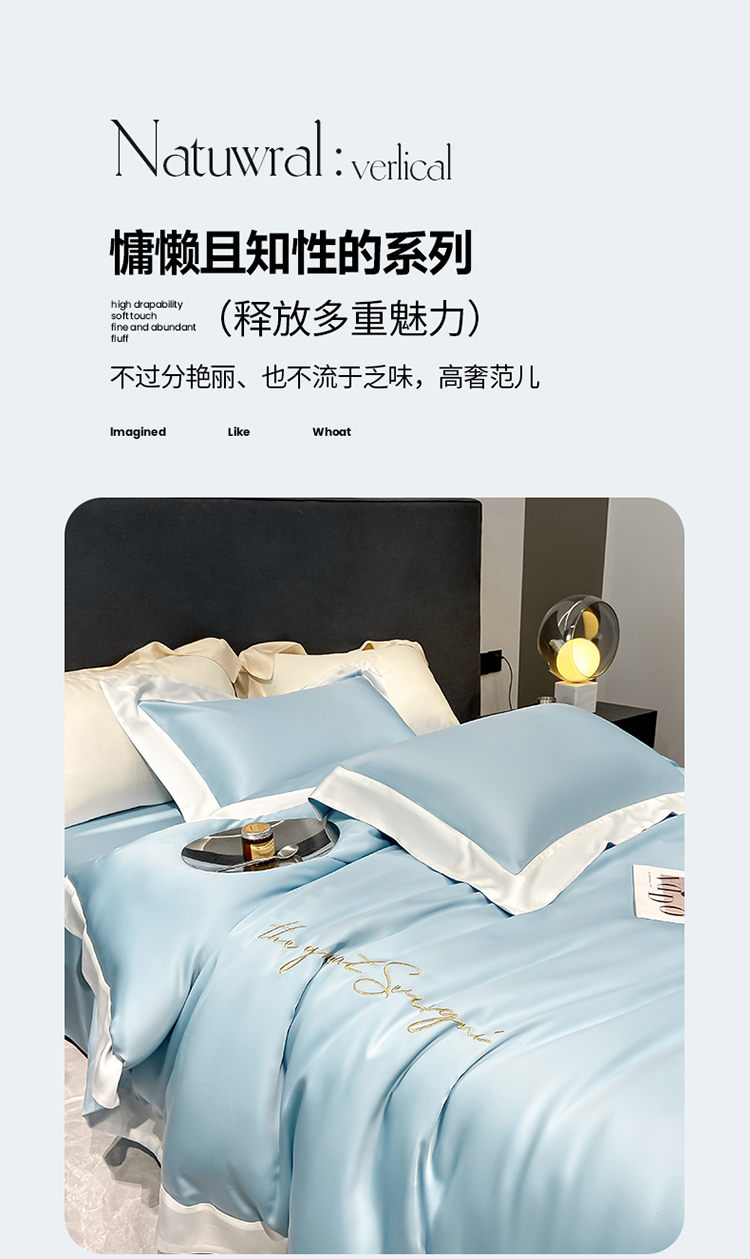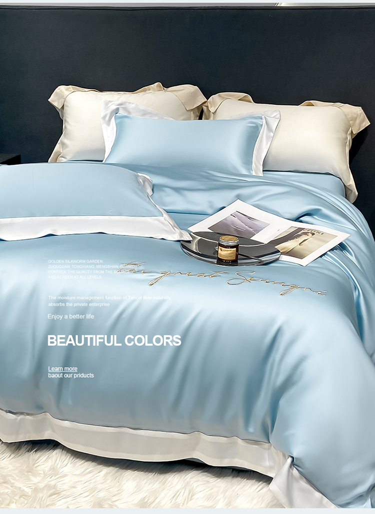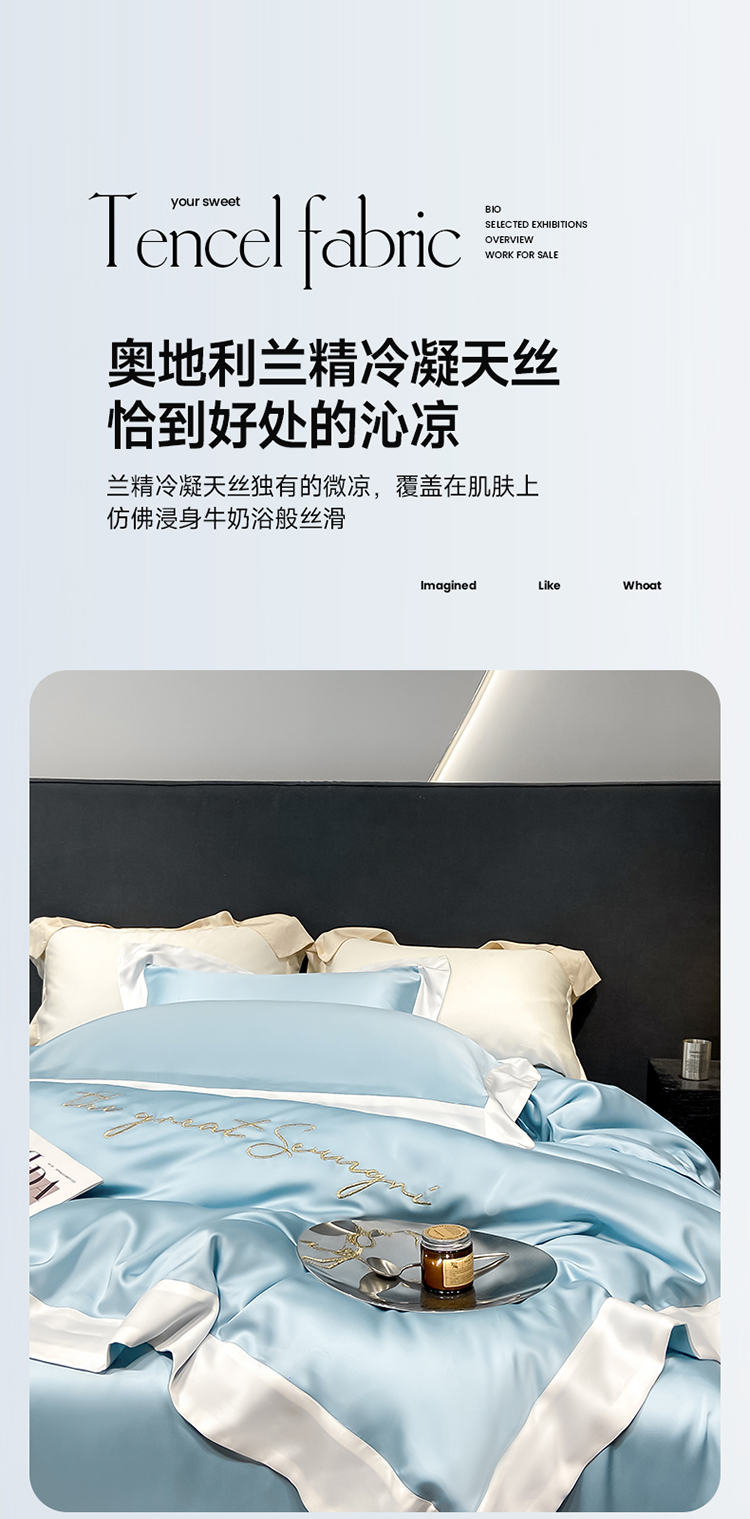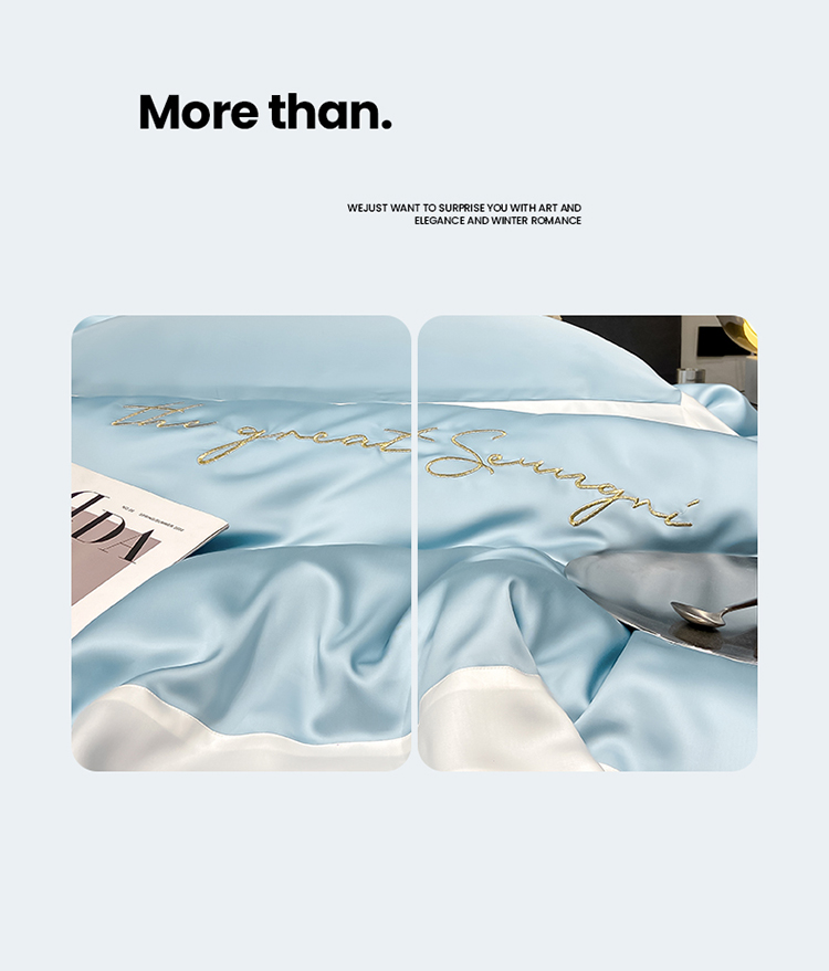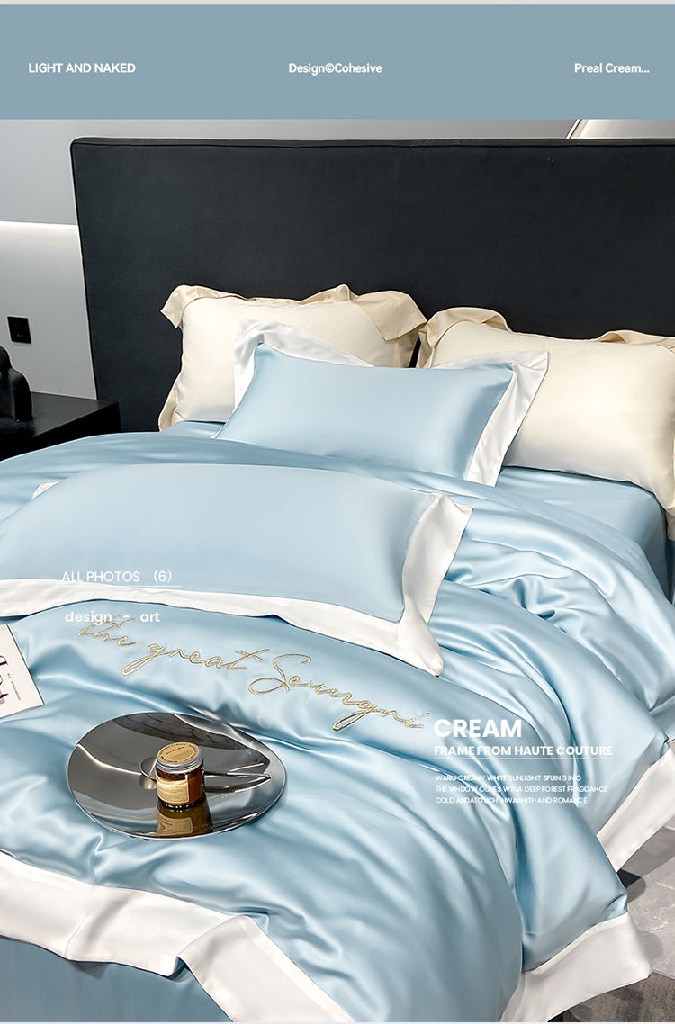 当前位置: 91家纺网 > 商品网购 > 床品套件 > 四件套 > 莱赛尔四件套 > 高档礼盒装春夏新品超细旦冷凝天丝刺绣四件套100%莱赛尔 冰蓝-缦悦-A类超细旦冷凝天丝