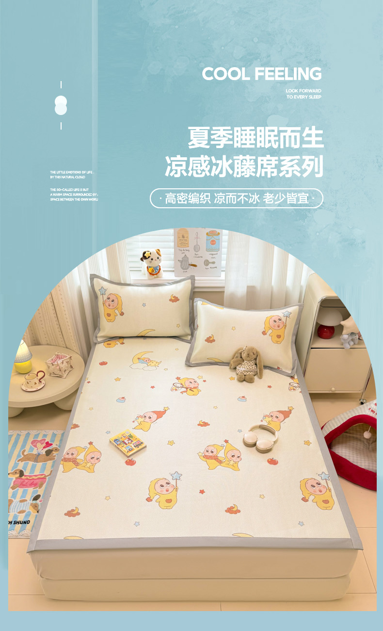 慕尚家纺 2026新款清新凉感冰藤席平铺款 开心约克