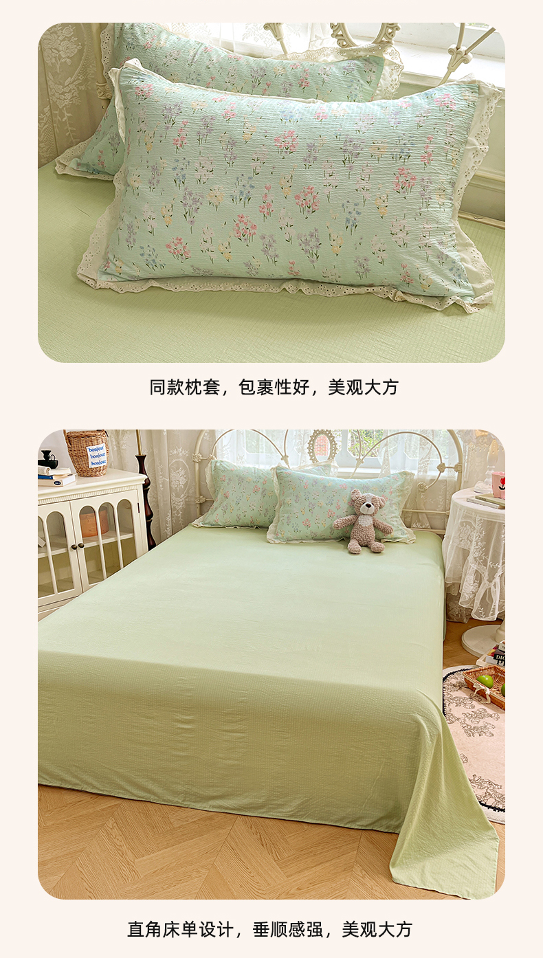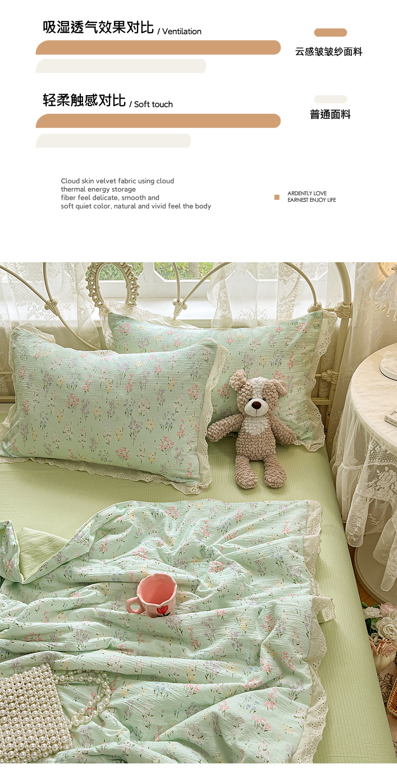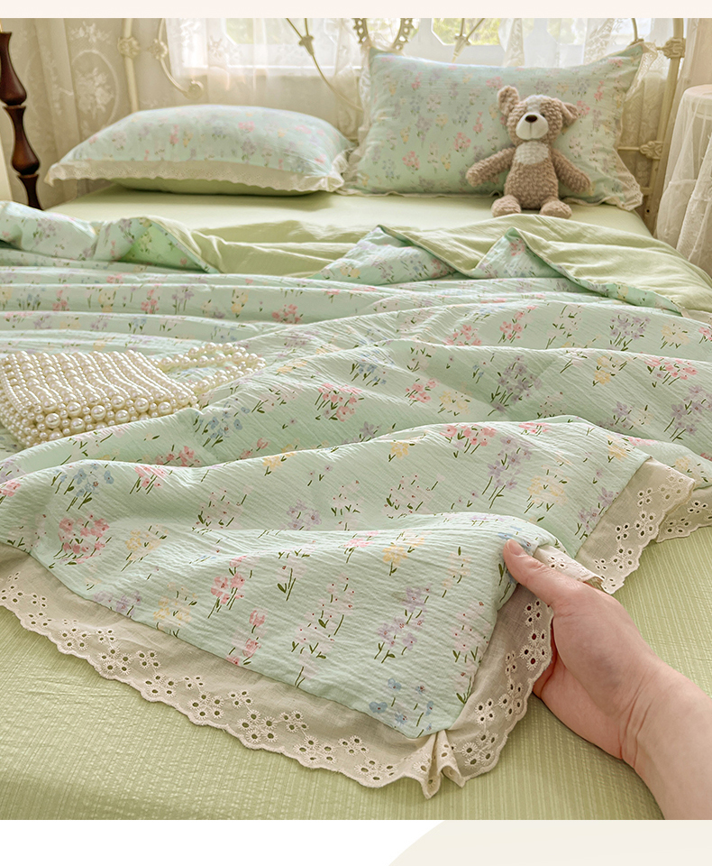 优佳优品 2026新款云感皱皱纱全棉花边款夏被四件套 清禾