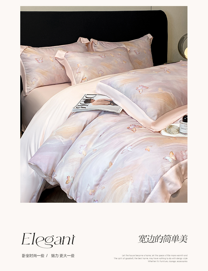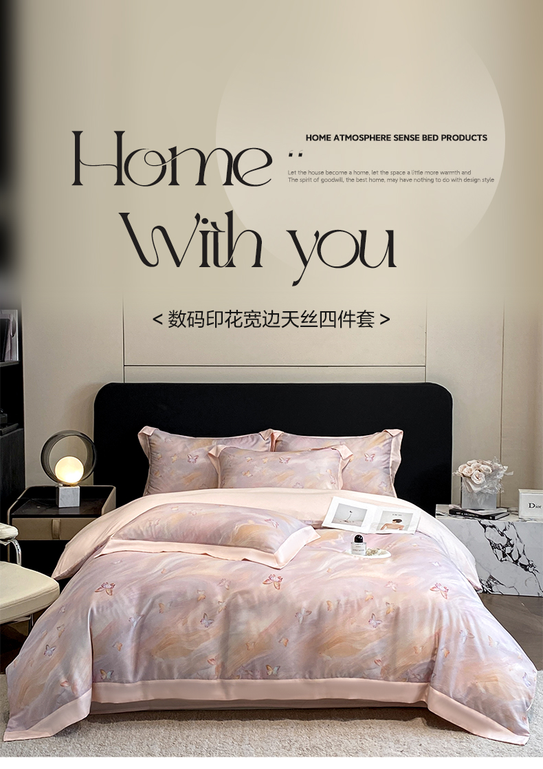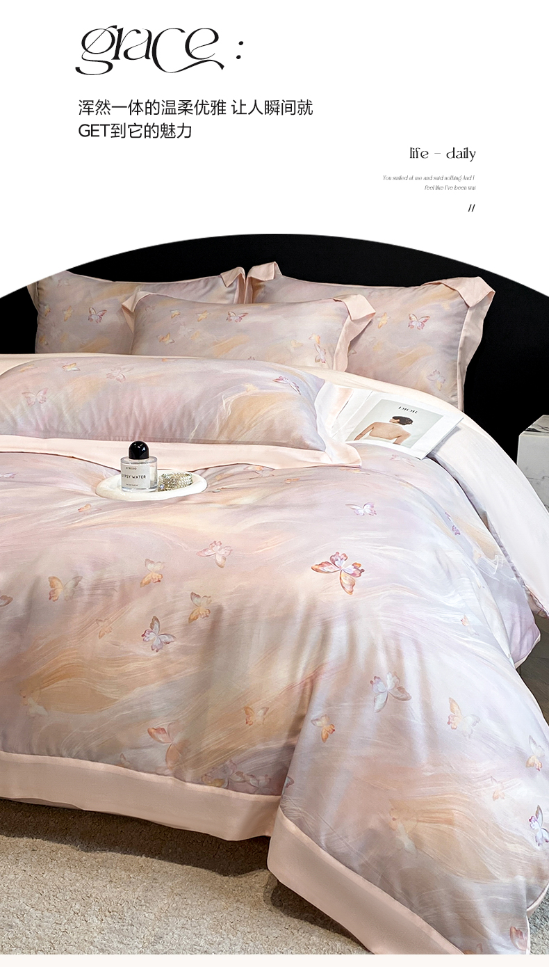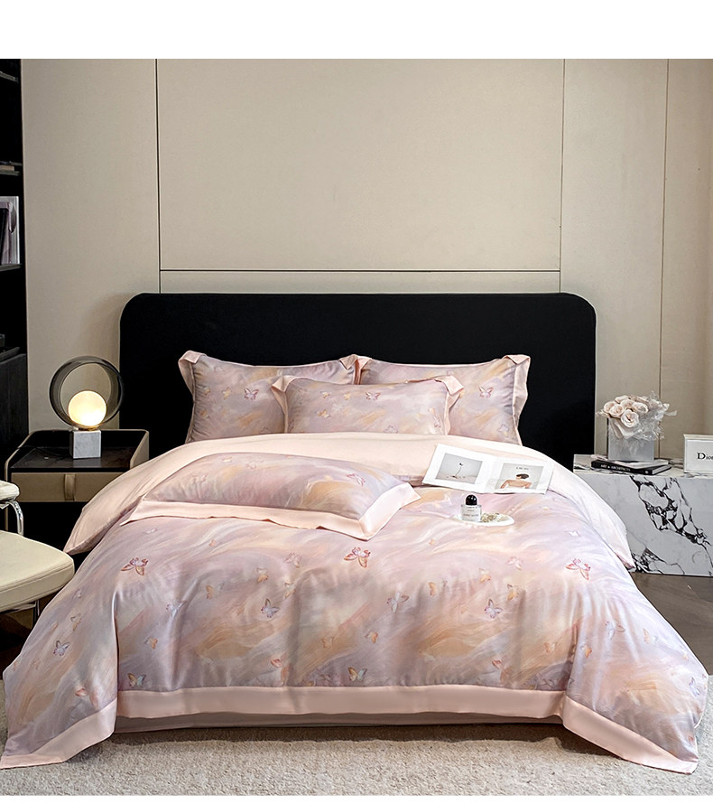 当前位置: 91家纺网 > 商品网购 > 床品套件 > 四件套 > 莱赛尔四件套 > 博纳家纺 2026新款数码印花天丝宽边四件套 流光-粉