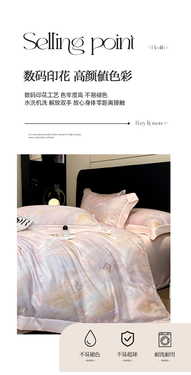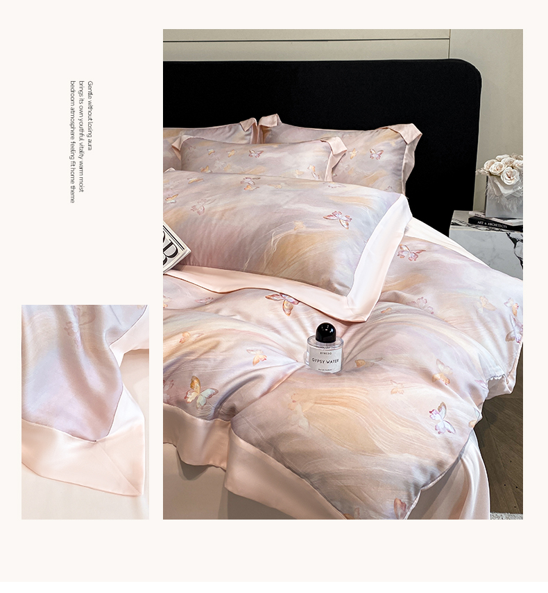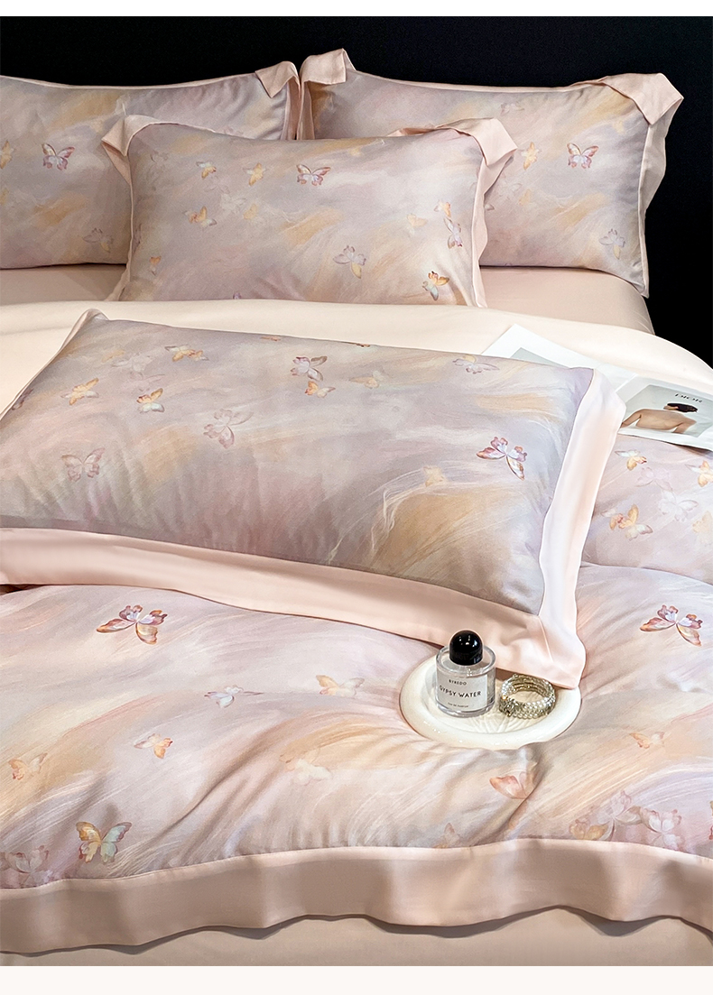 当前位置: 91家纺网 > 商品网购 > 床品套件 > 四件套 > 莱赛尔四件套 > 博纳家纺 2026新款数码印花天丝宽边四件套 流光-粉