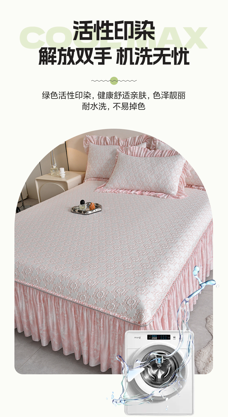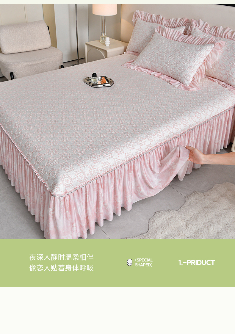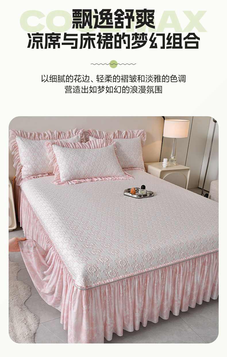 商品名称:(总)畅畅家纺 2026新款夏季冰豆豆PE高分子凉感印花床裙款空调软凉席三件套