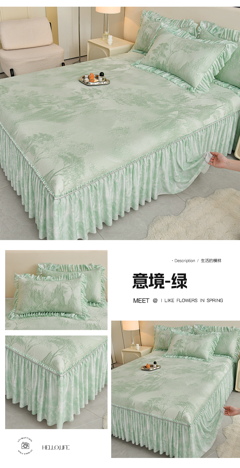 (总)畅畅家纺 2026新款花边3D立体冰豆豆冰丝凉席床裙款三件套,漫舞-粉,漫舞-灰,漫舞-蓝,漫舞-绿,幸运花朵-粉,幸运花朵-灰,幸运花朵-蓝,幸运花朵-绿