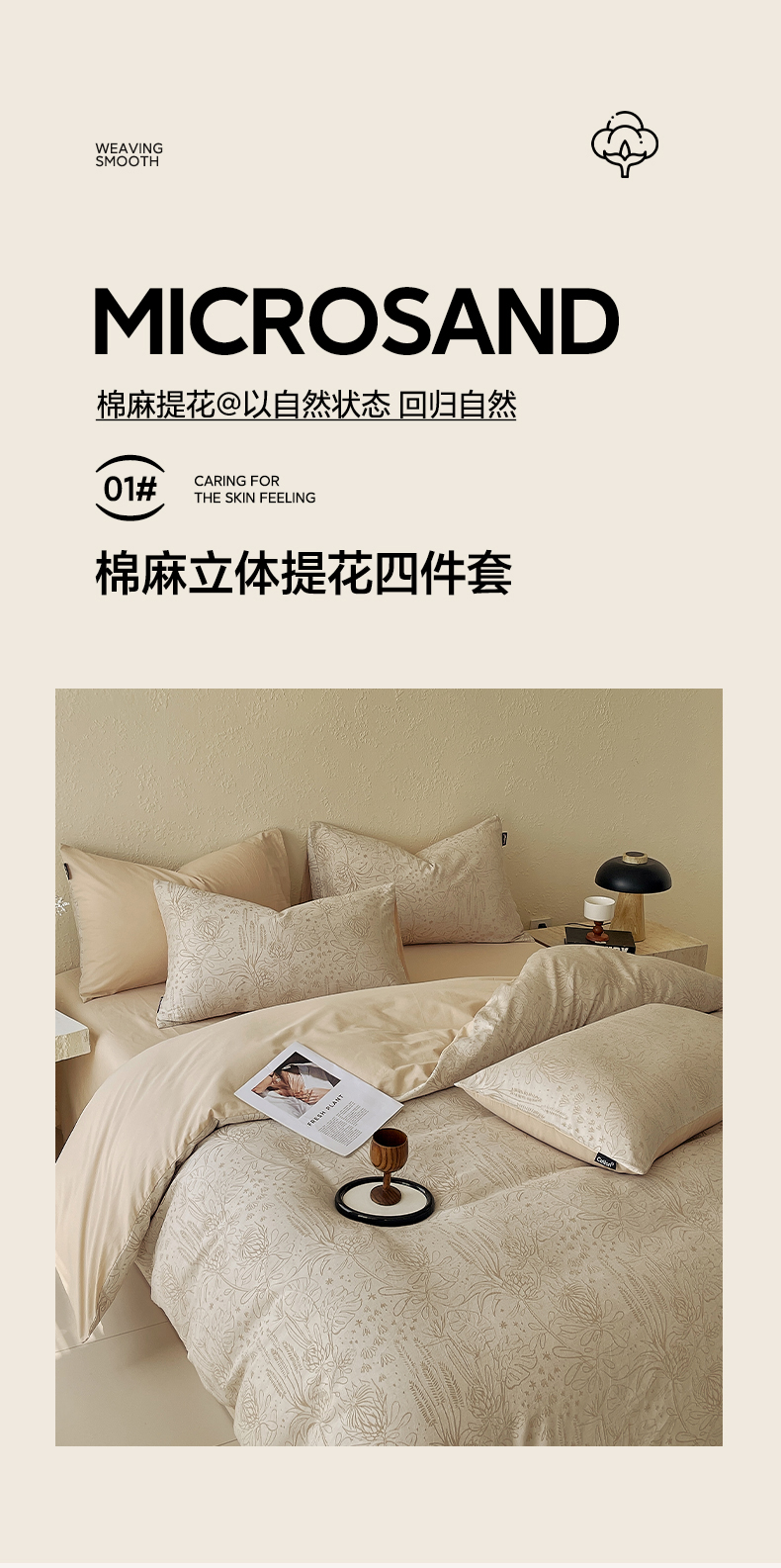 当前位置: 91家纺网 > 商品网购 > 床品套件 > 四件套 > 棉麻四件套 > 小懒猪 2026新款棉麻立体提花四件套 棉麻凝夏