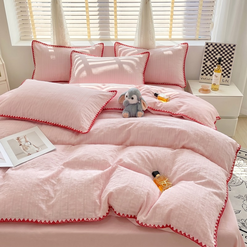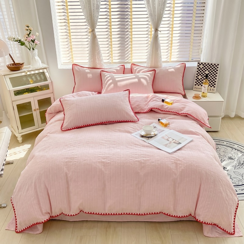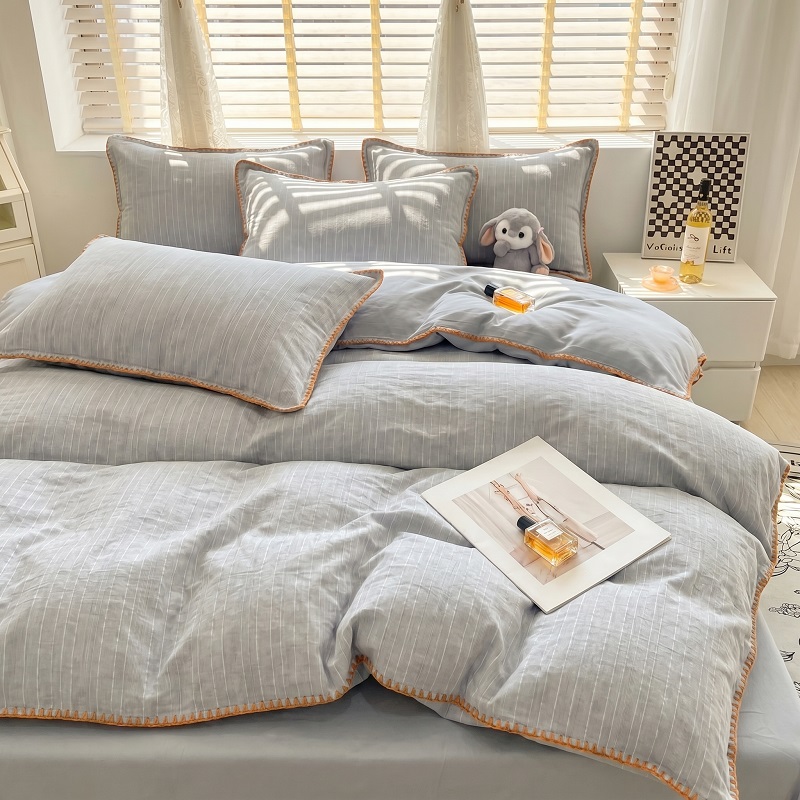 当前位置: 91家纺网 > 商品网购 > 床品套件 > 四件套 > 化纤普通四件套 > (总)韩秀家纺 2026新款阳离子贝壳绣四件套亚麻风双层纱色织提花四件套