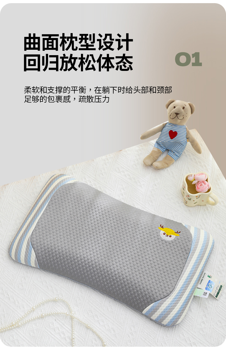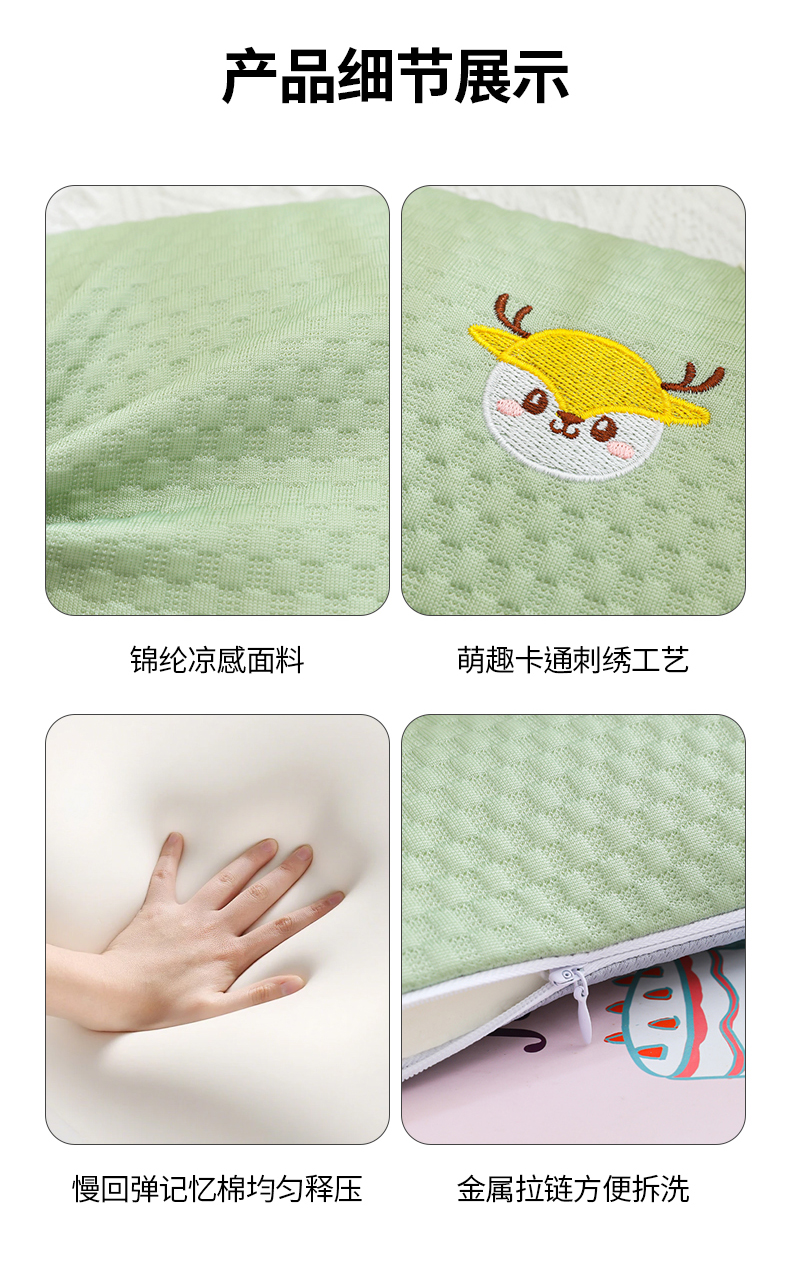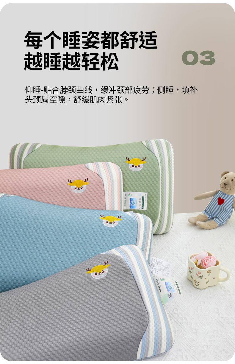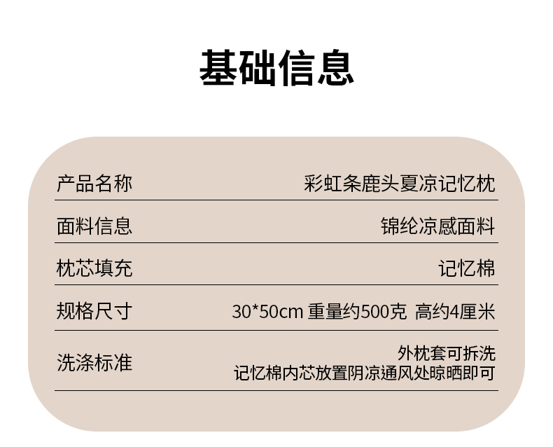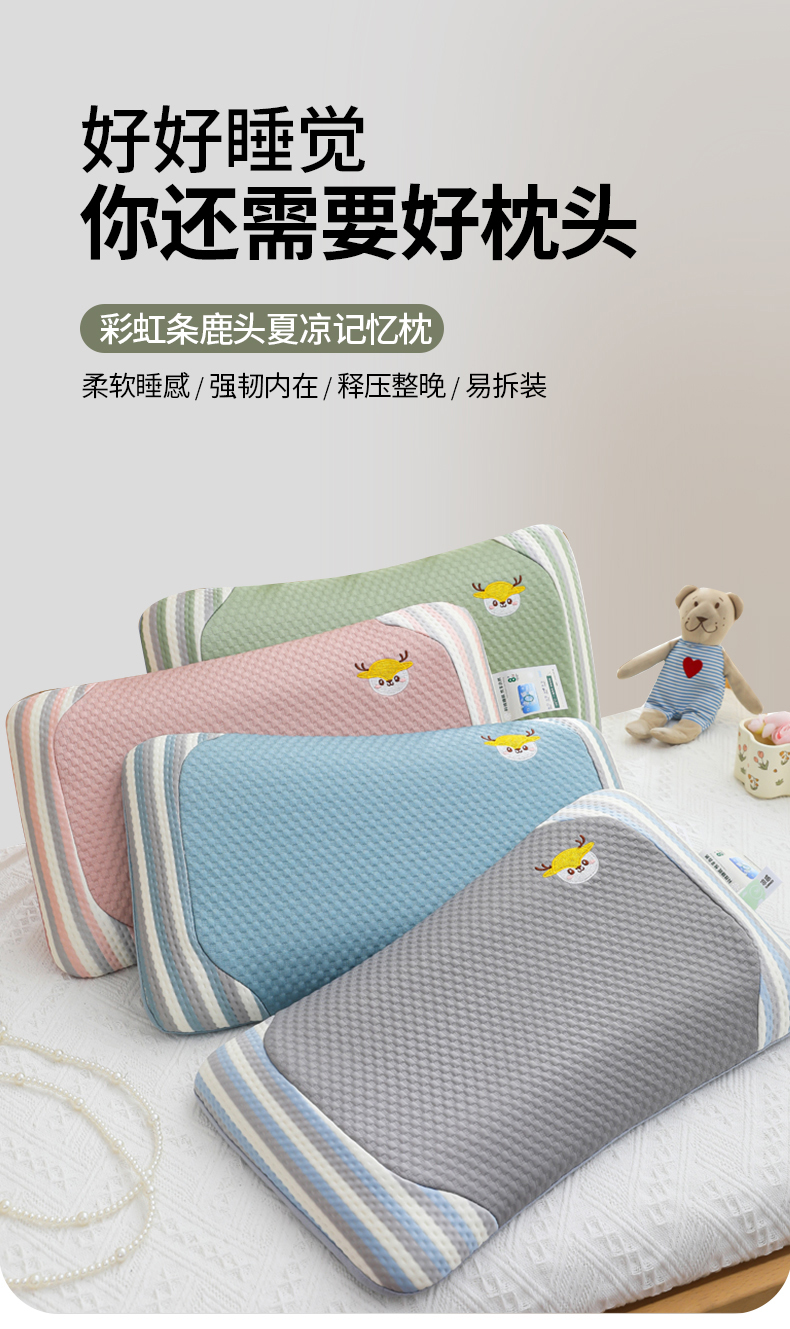 商品名称:(总)仁宇枕业 2026新款新品彩虹条鹿头婴儿幼儿童夏凉记忆枕头枕芯