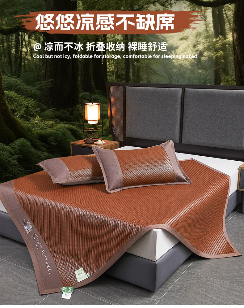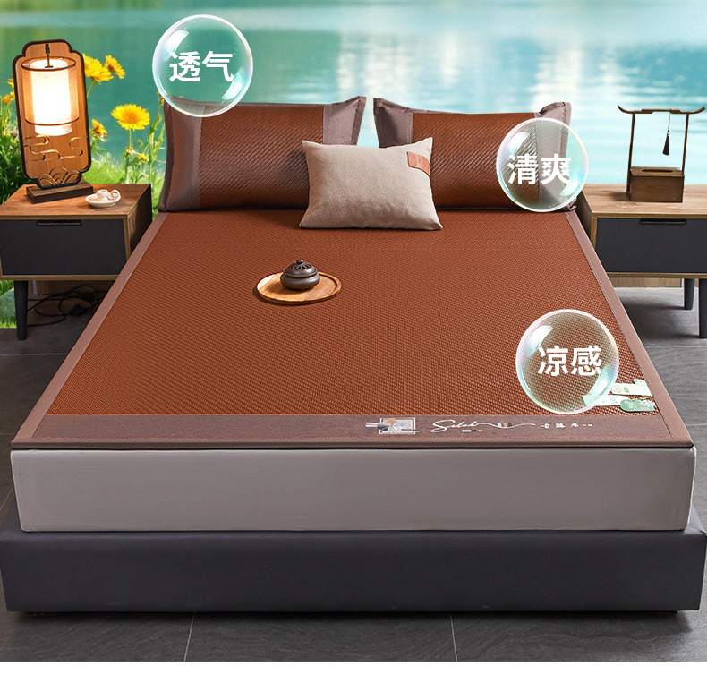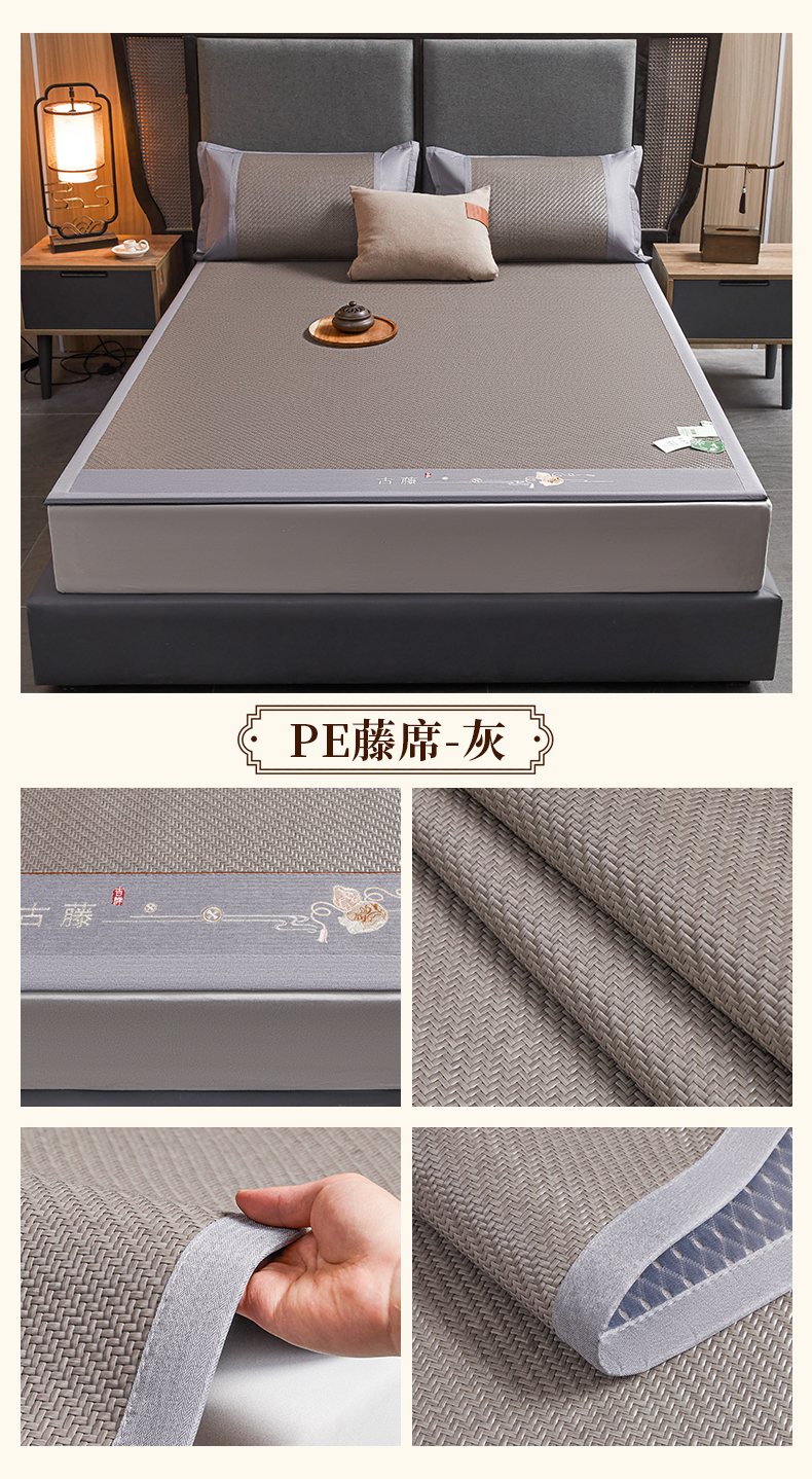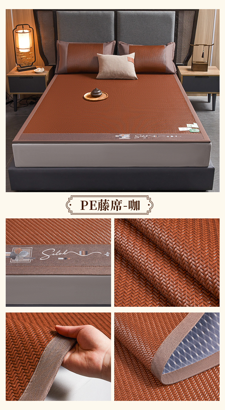 (总)森璐家纺 2026新款高级刺绣复合PE藤席单藤席好品质PE藤席凉席席子三件套