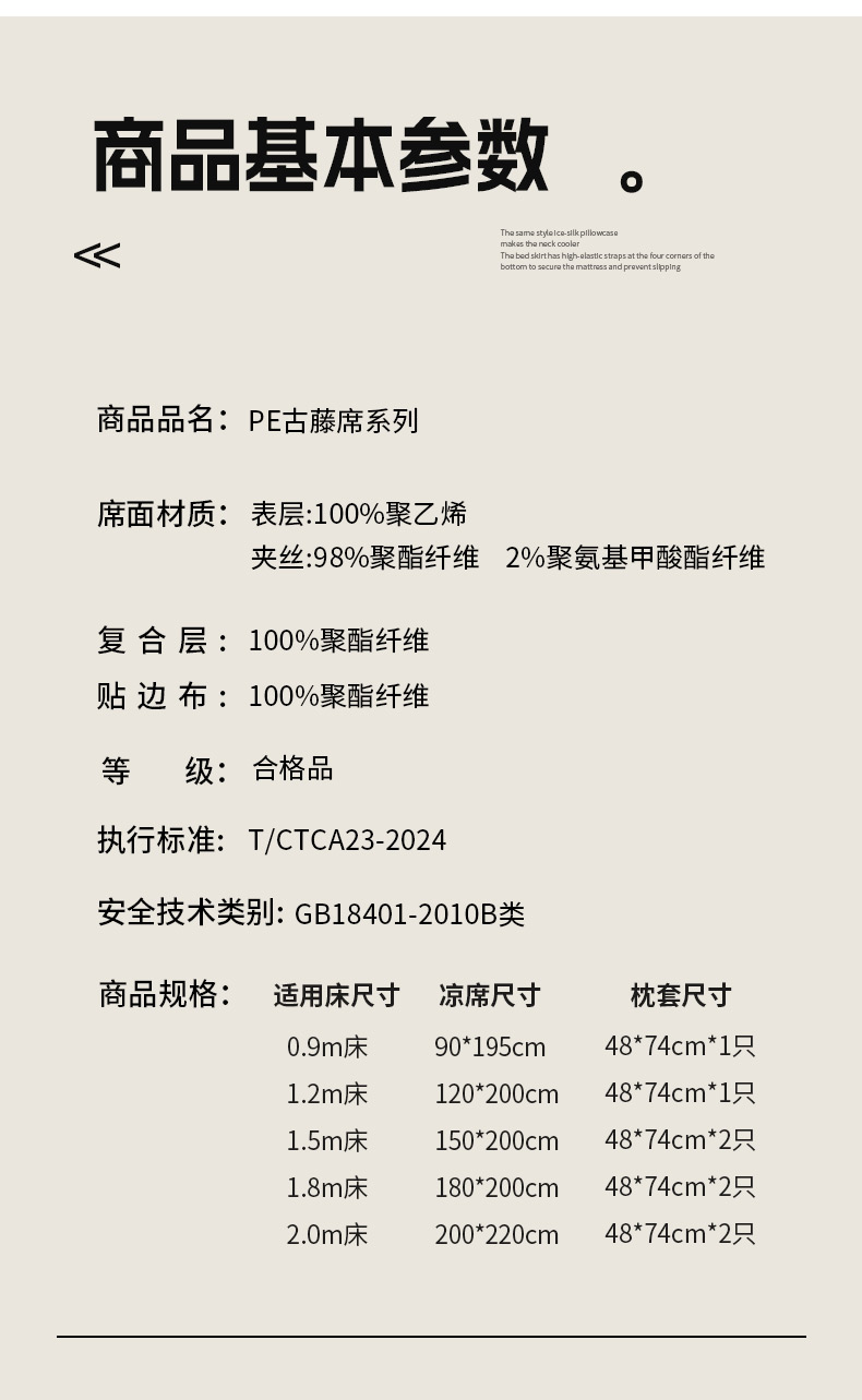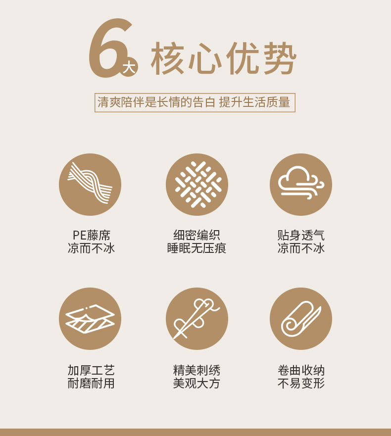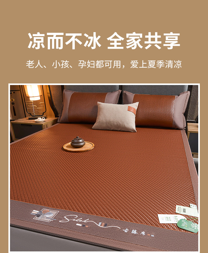 商品名称:(总)森璐家纺 2026新款高级刺绣复合PE藤席单藤席好品质PE藤席凉席席子三件套