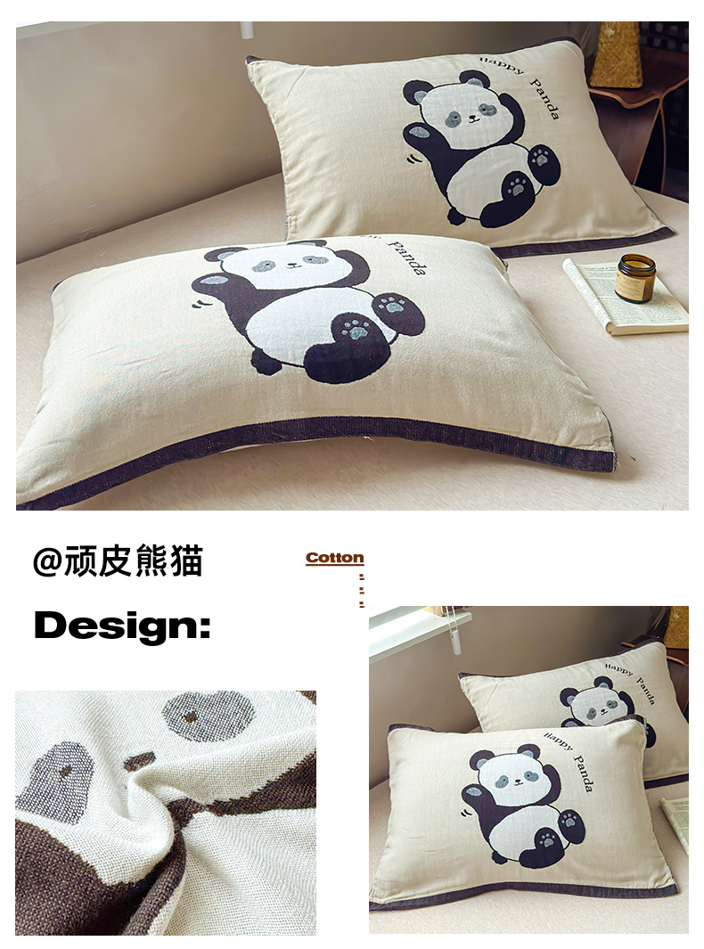 商品名称:乐家毛巾被(工厂自产自销) 2026新款全棉纯棉四层纱布枕巾 顽皮熊猫