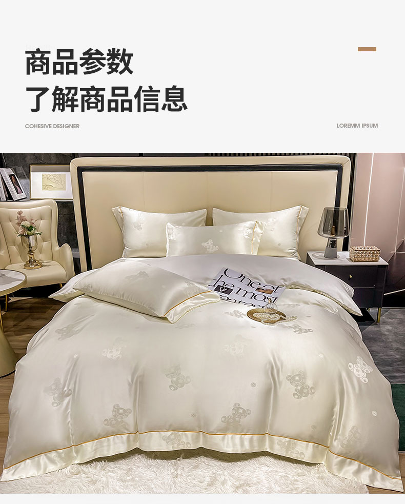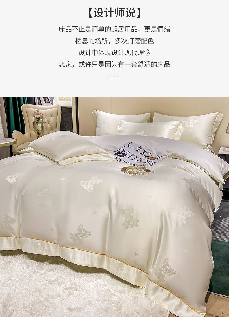 当前位置: 91家纺网 > 商品网购 > 床品套件 > 四件套 > 全棉普通四件套 > 经年 2026新款60S贡缎提花水洗真丝四件套 潮流熊-米白