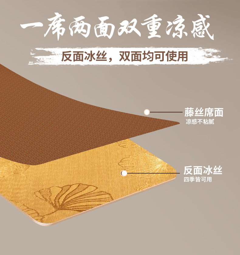 (总)怡源梦 2026新款古藤席刺绣双面系列,古藤席-棕色,古藤席-灰色,古藤席-绿色,古藤席-深咖