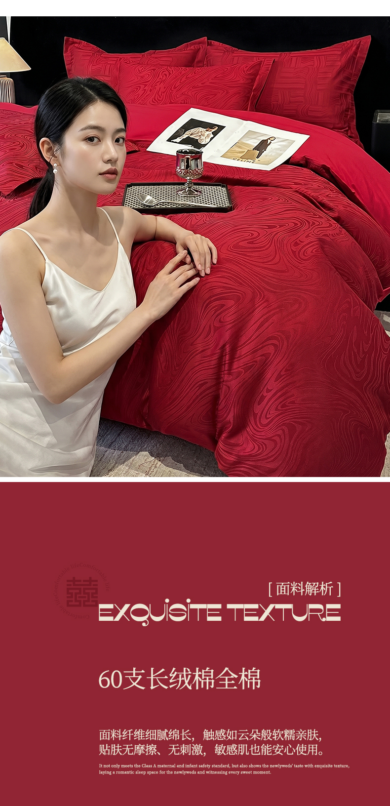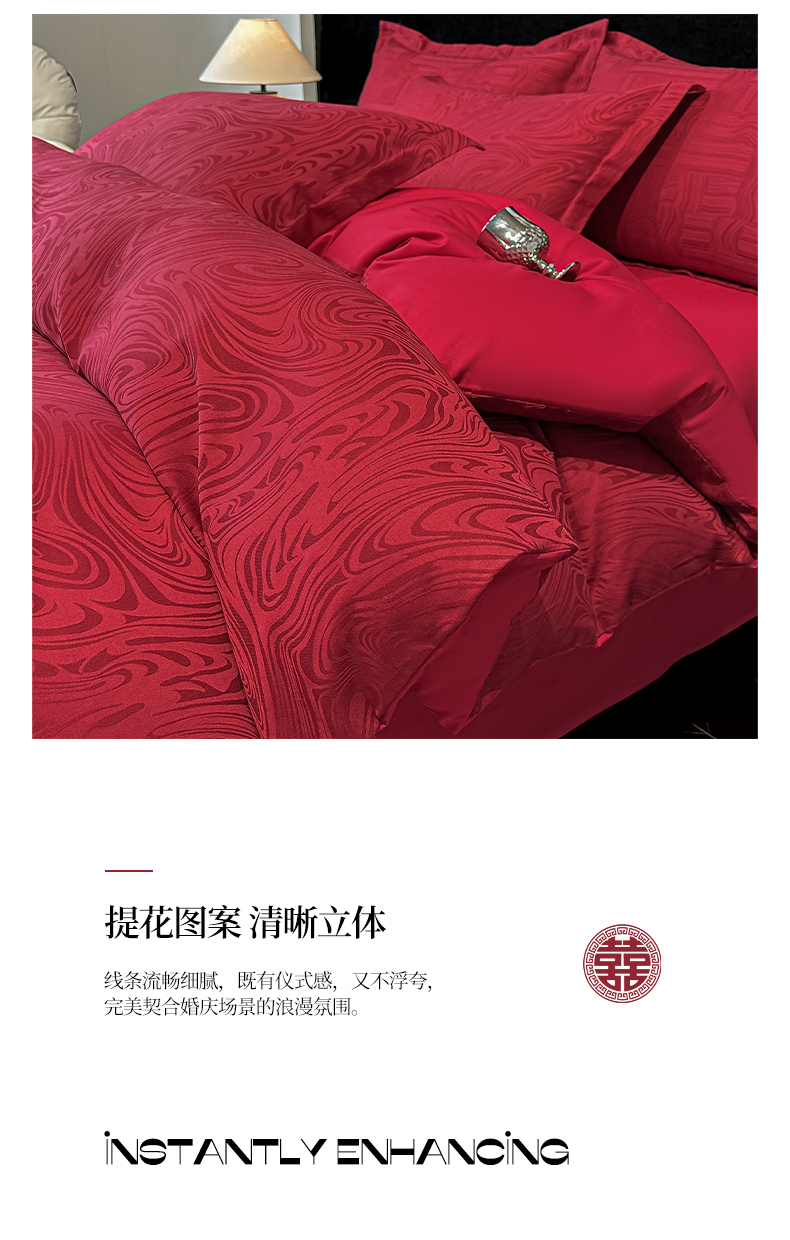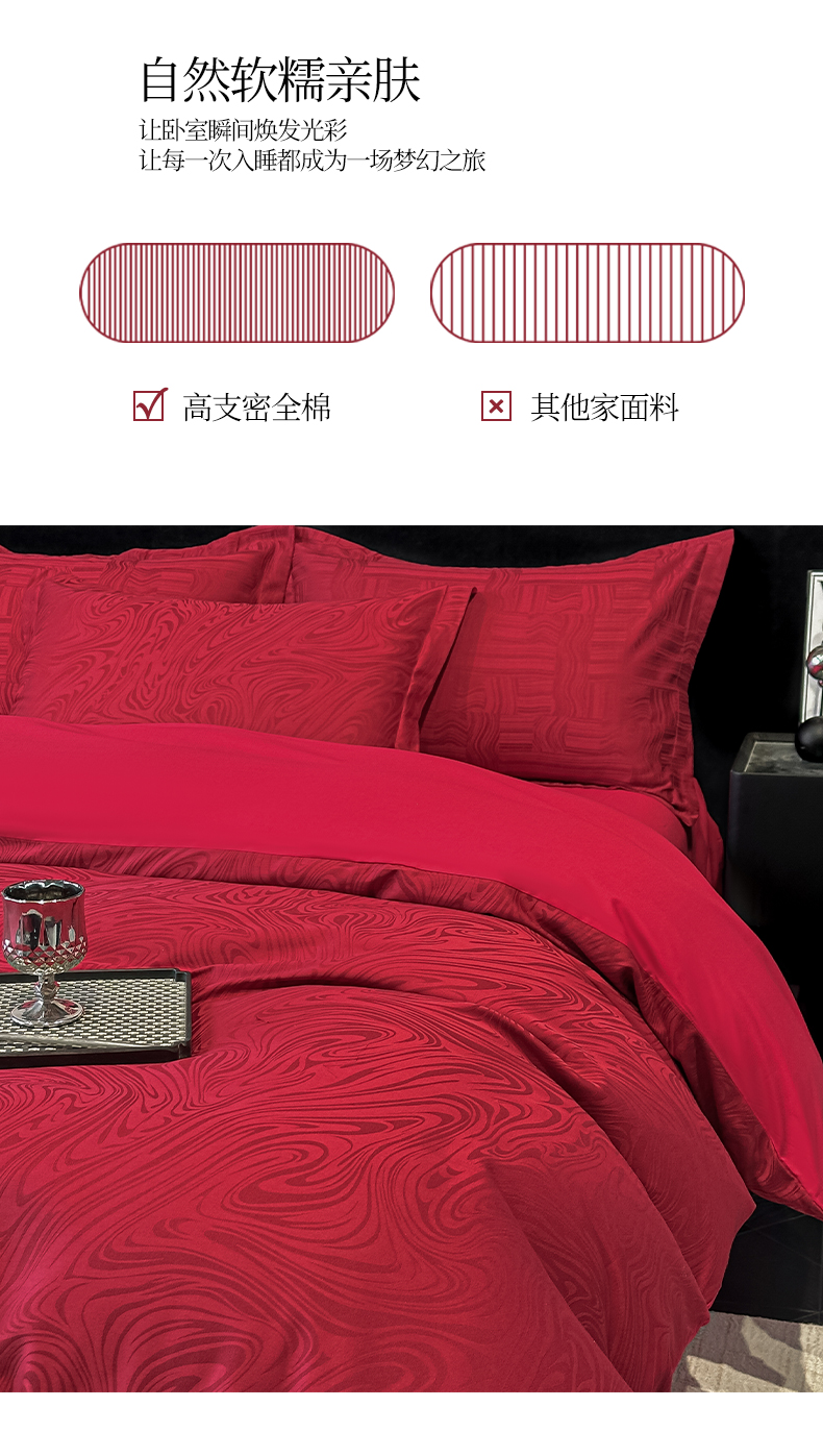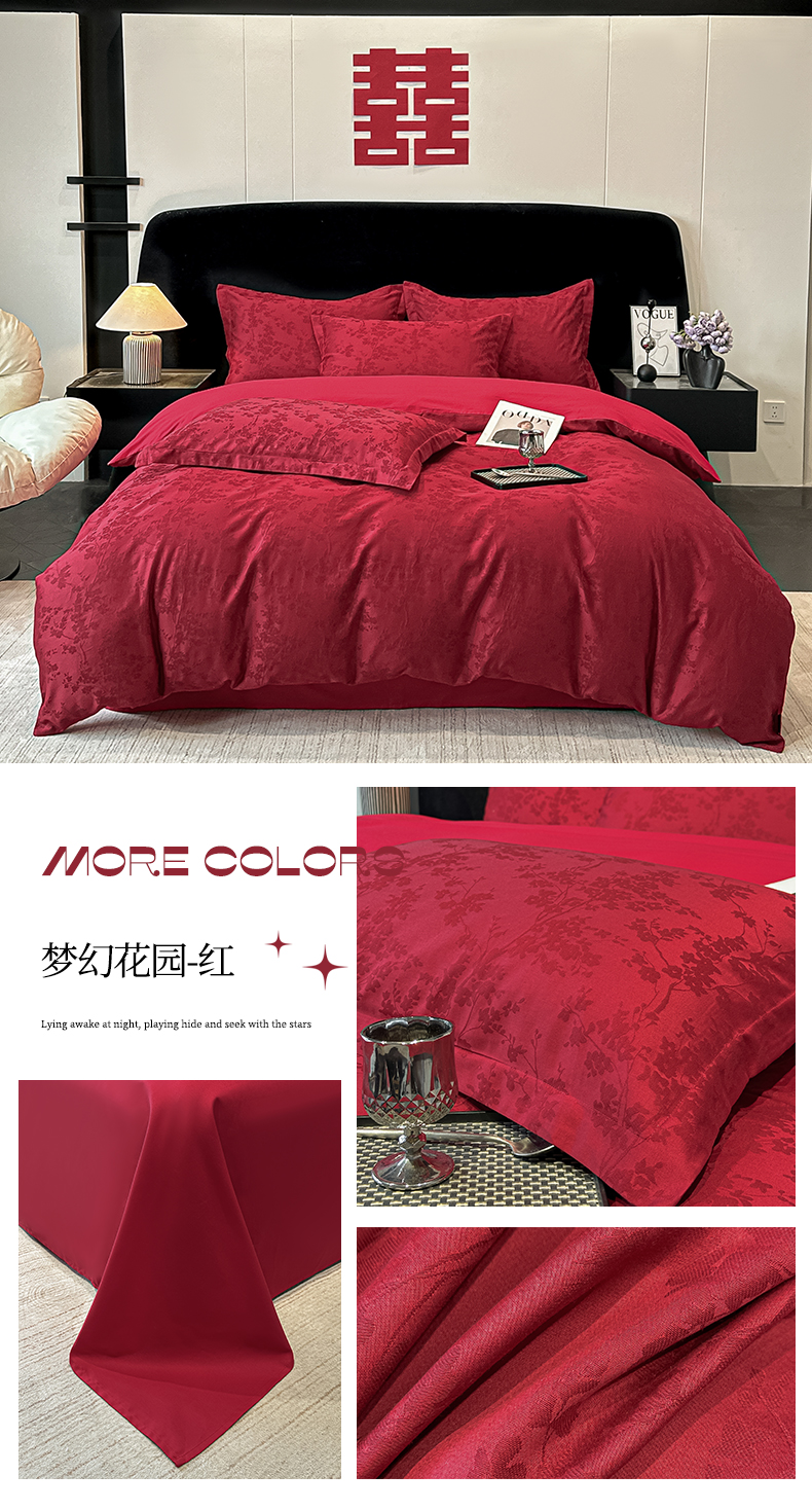 (总)宅家居 2026新款婚庆系列A类A版60支立体浮雕贡缎提花光泽绸缎感B版长绒棉纯棉四件套,幻纤影-红,清风颂雅-红,凯迪娜-红,梦幻花园-红,恋曲花语-红