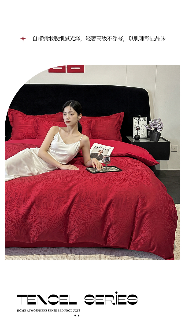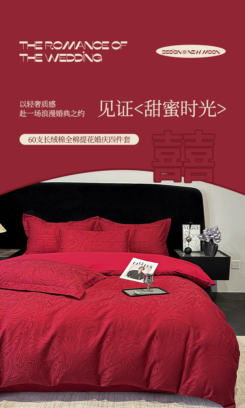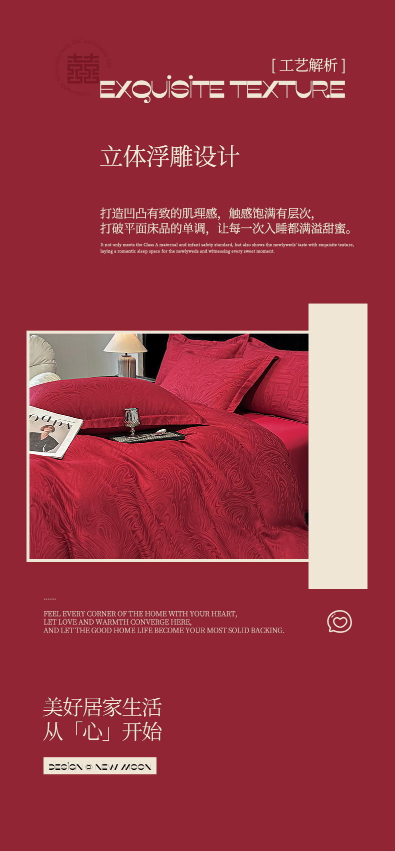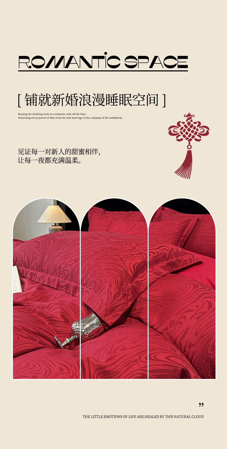 (总)宅家居 2026新款婚庆系列A类A版60支立体浮雕贡缎提花光泽绸缎感B版长绒棉纯棉四件套,幻纤影-红,清风颂雅-红,凯迪娜-红,梦幻花园-红,恋曲花语-红