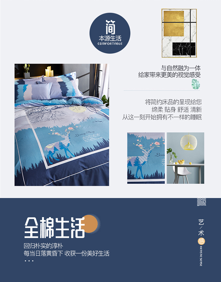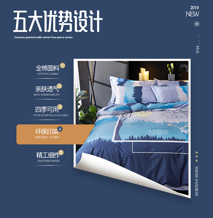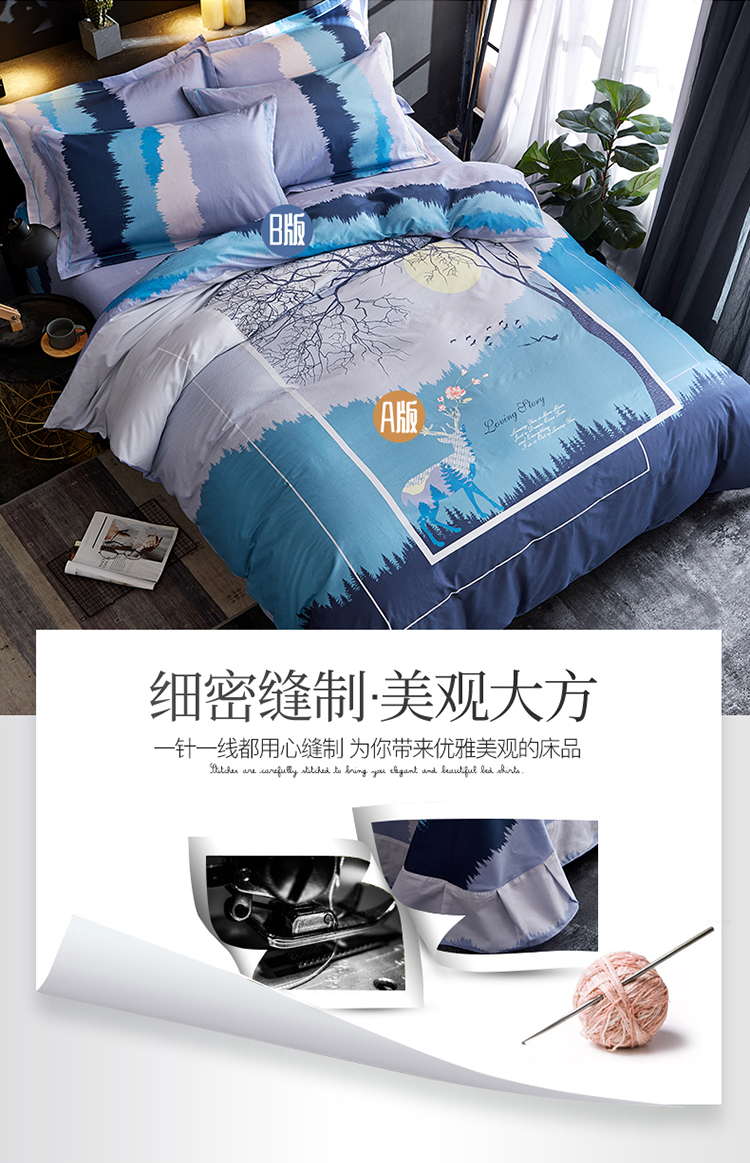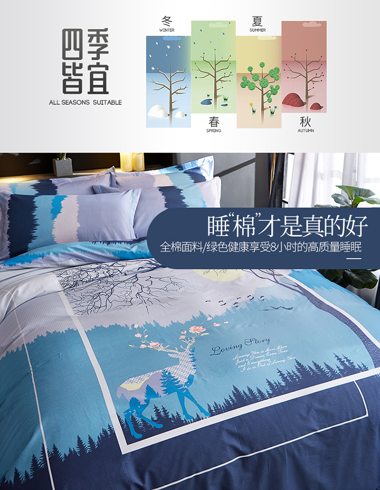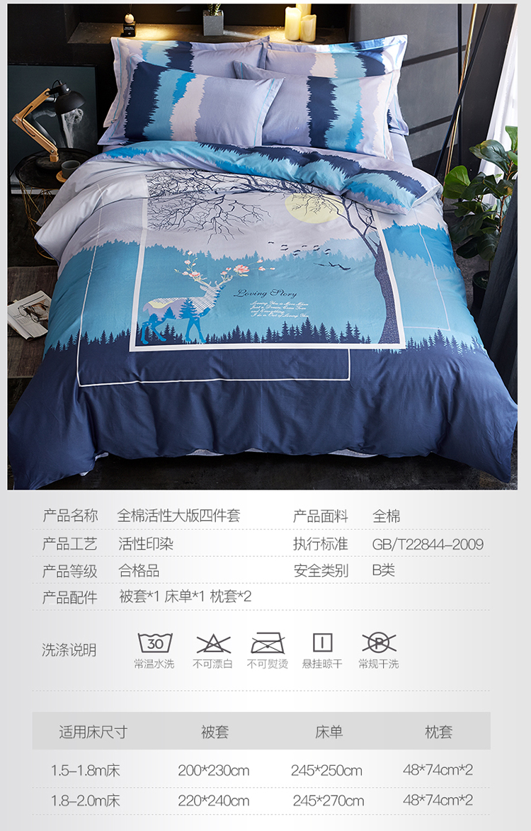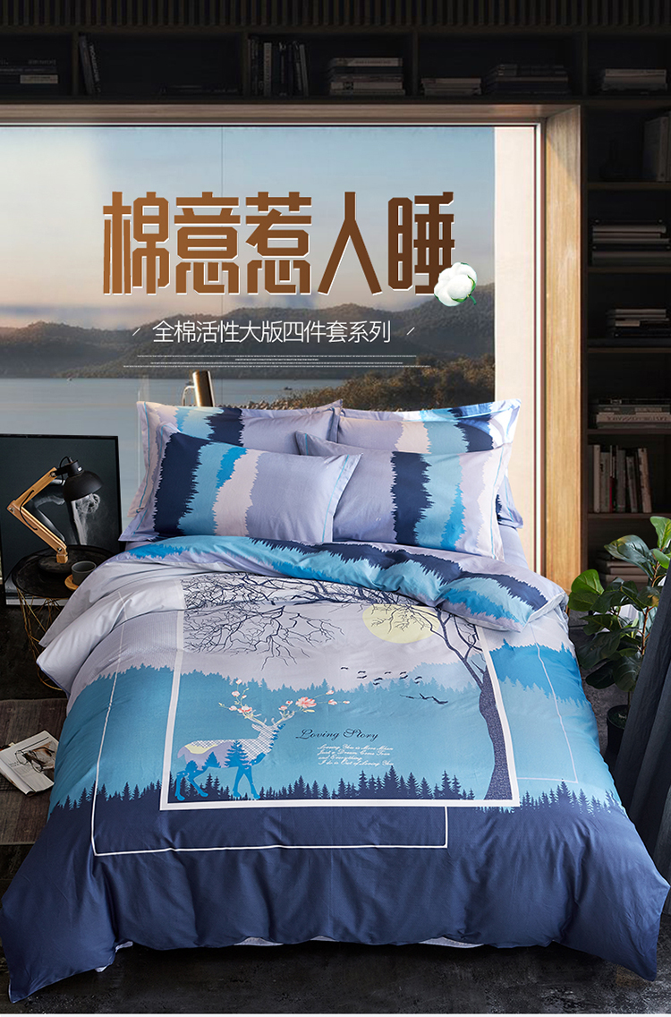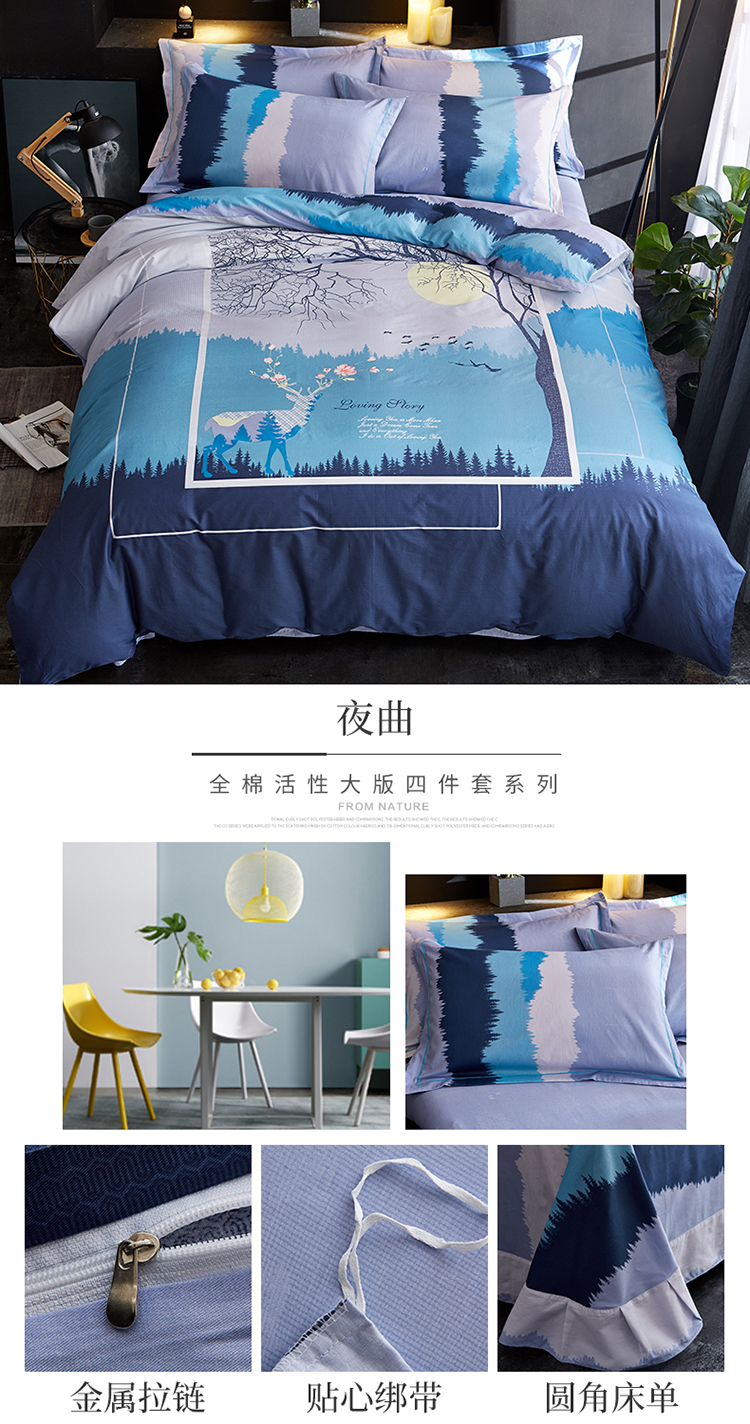 商品名称:雲归梦 2019全棉活性大版简约卡通风格四件套 夜曲