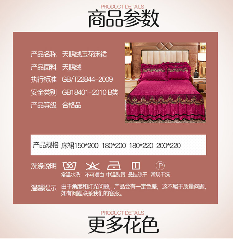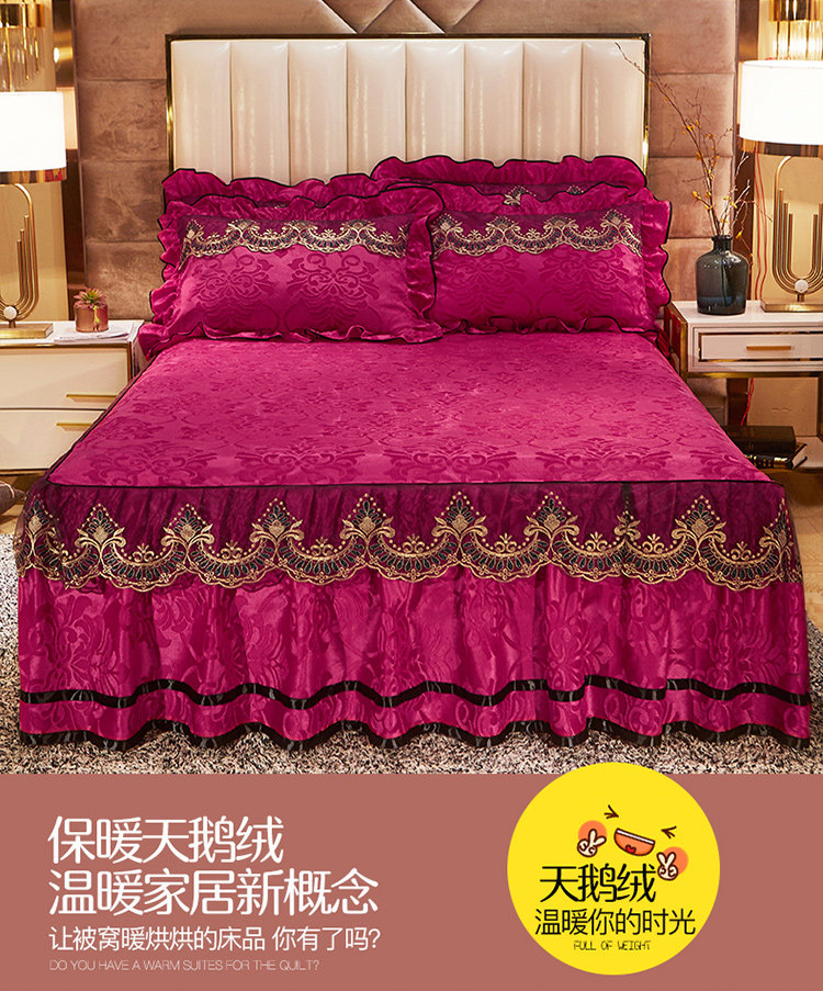 商品名称:网红馆 2025新款天鹅绒盛世经典单品床裙 玫红