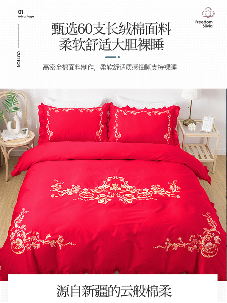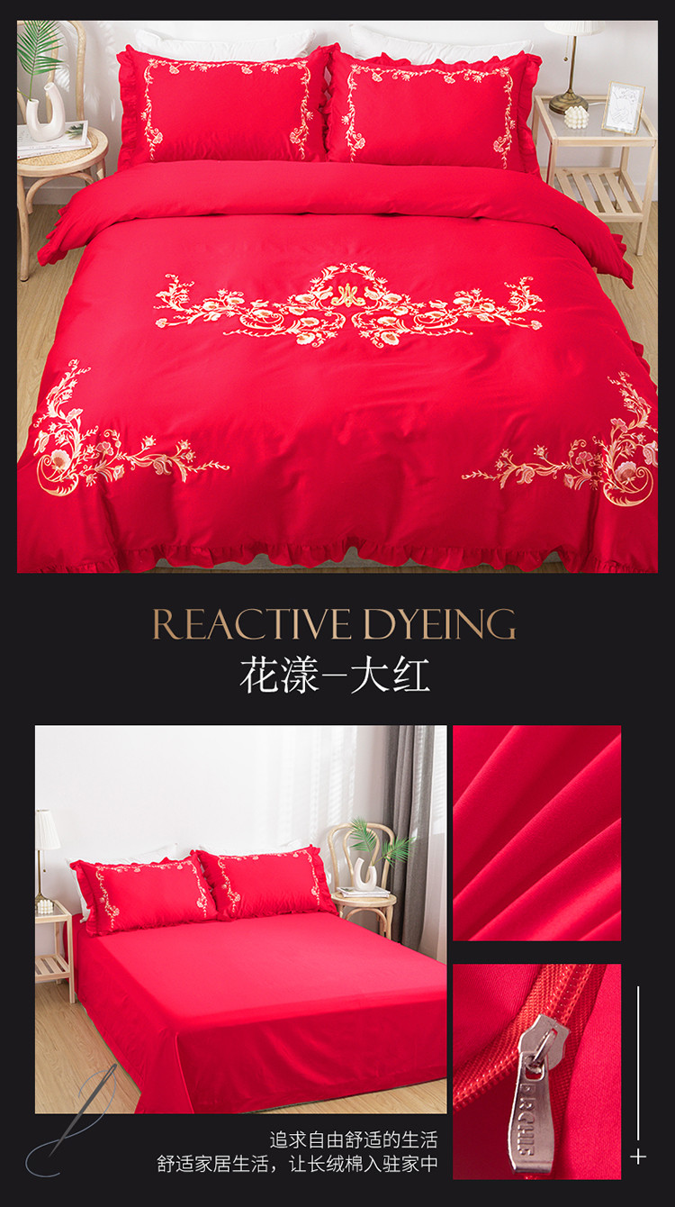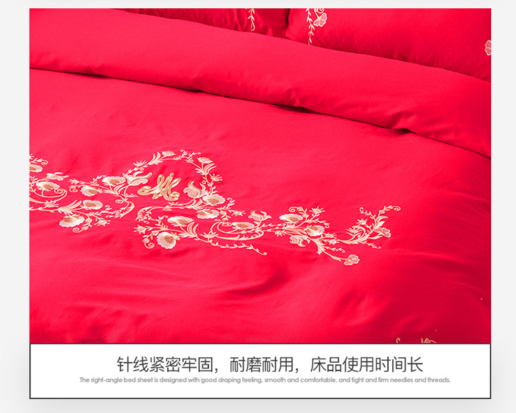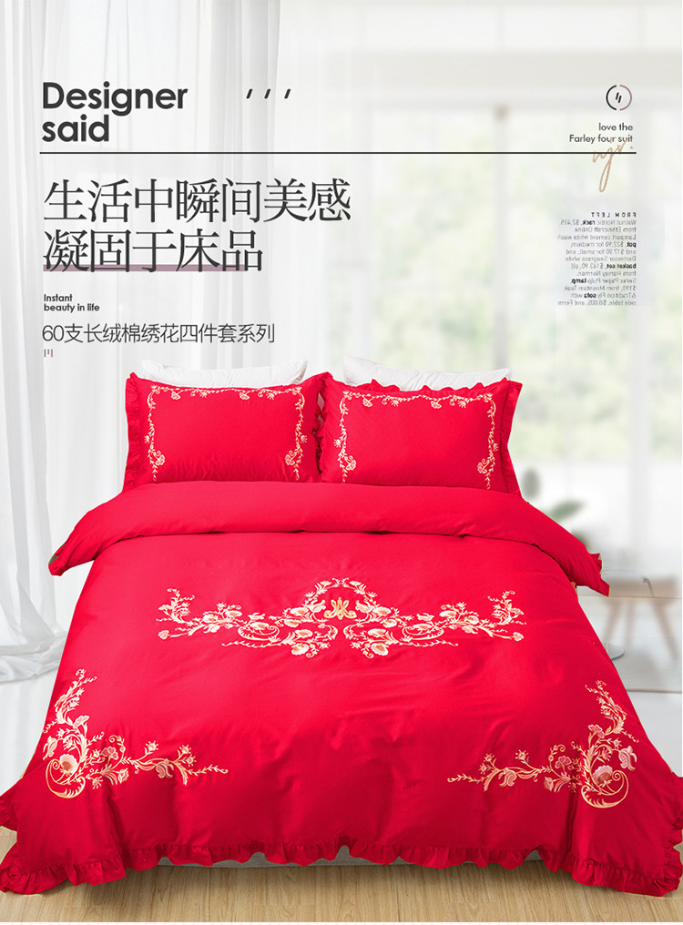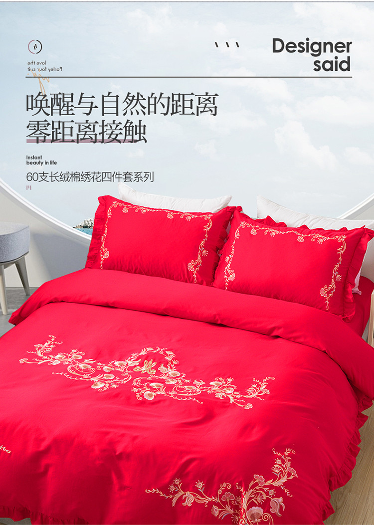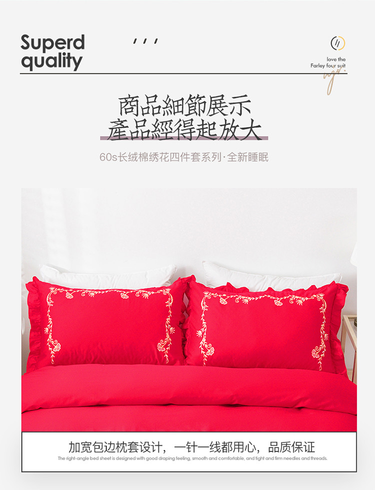 商品名称:雲归梦 2019新款60S长绒棉绣花四件套 花漾-大红