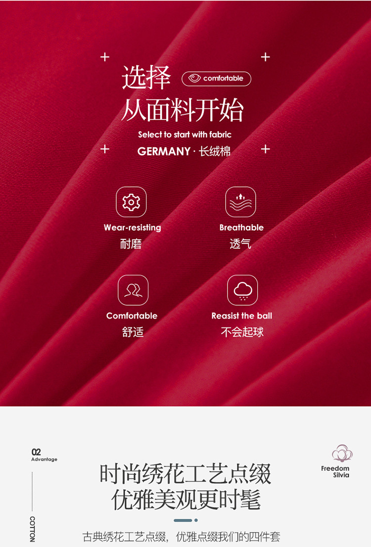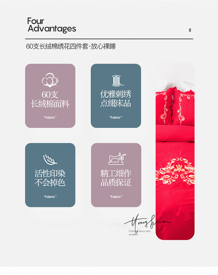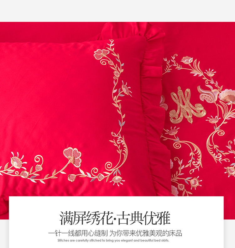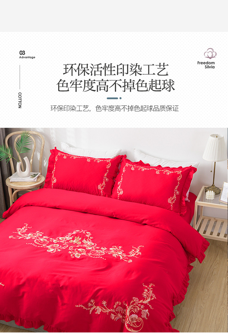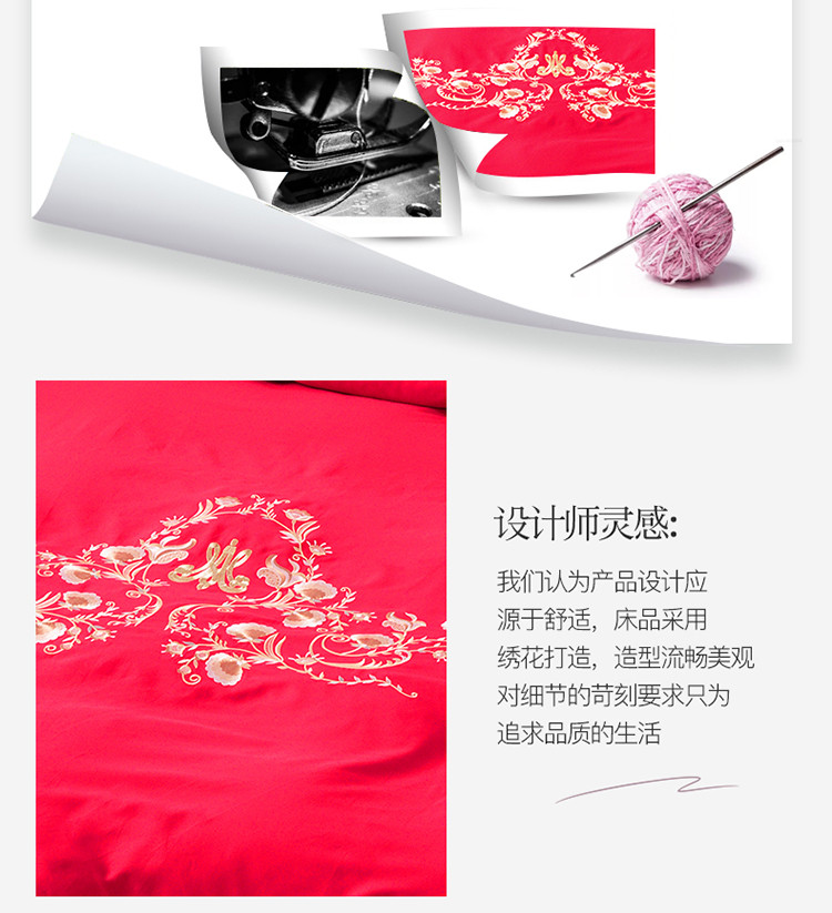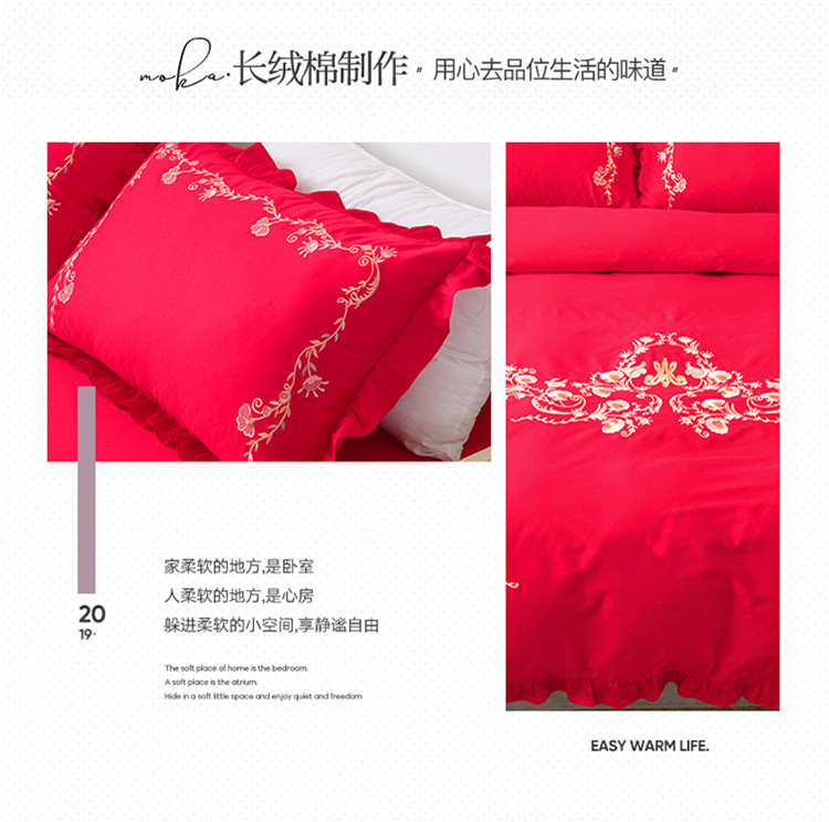商品名称:雲归梦 2019新款60S长绒棉绣花四件套 花漾-大红