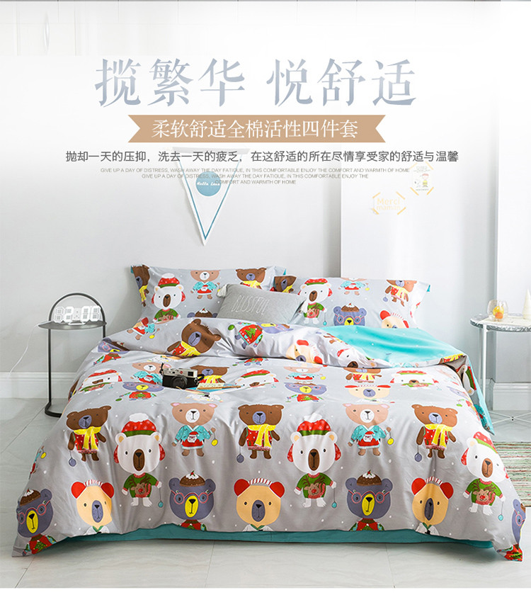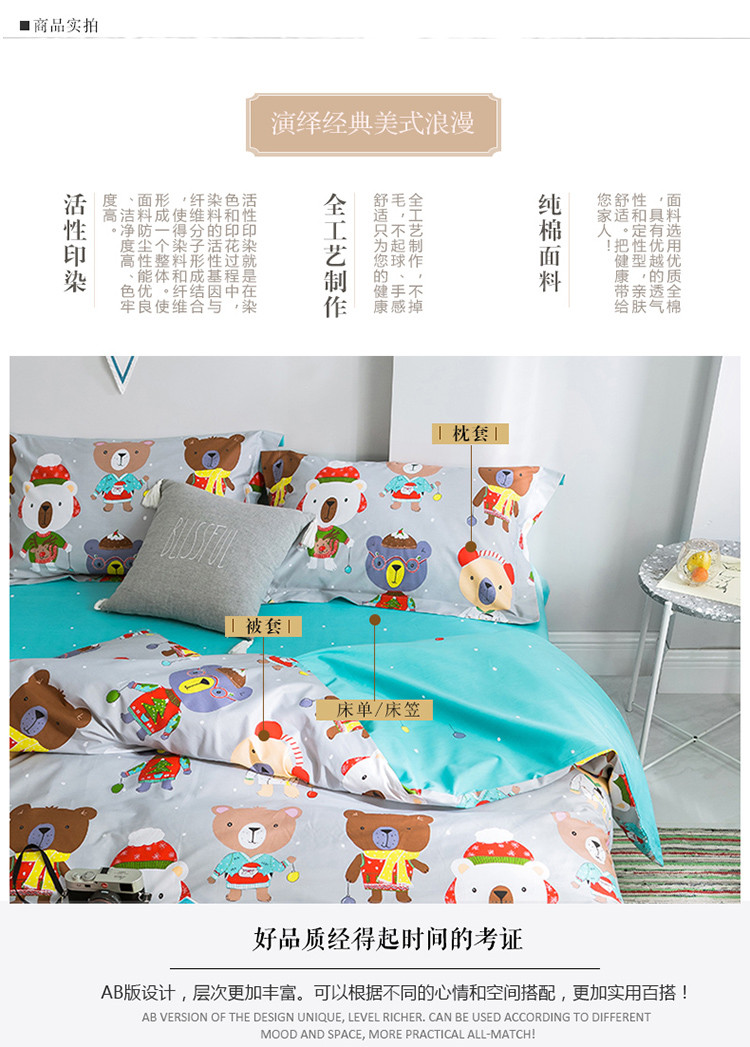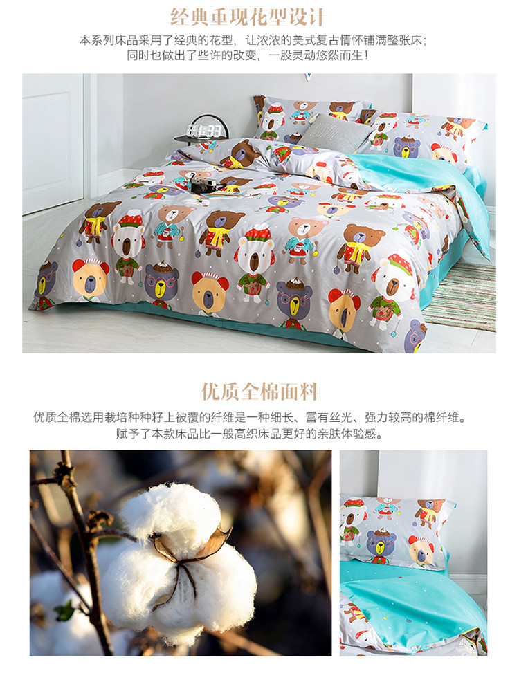 窝米 2019全棉13372减龄卡通系列四件套床单款 巴比熊