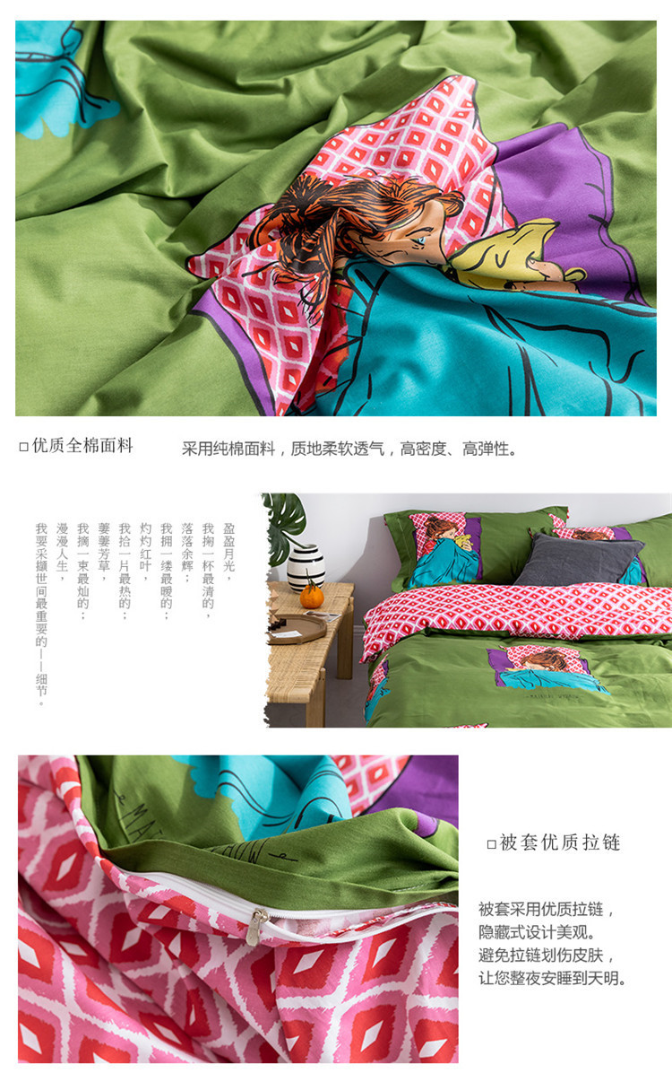 窝米 2020春夏新品全棉13372四件套小波西风系列小尤里,小尤里