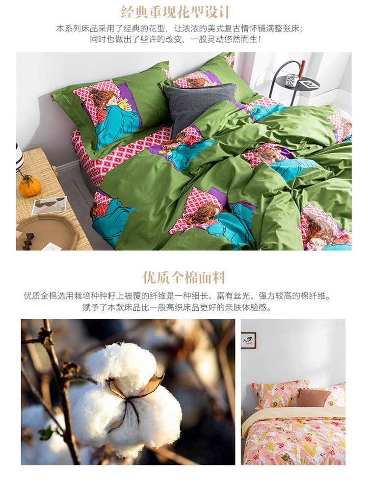 (总)窝米 2020春夏新品全棉13372四件套小波西风系列,草莓酱,木槿,小花花,小尤里