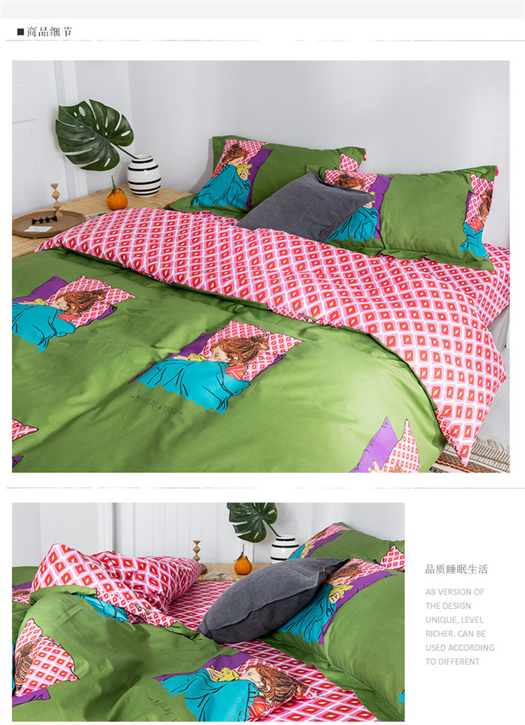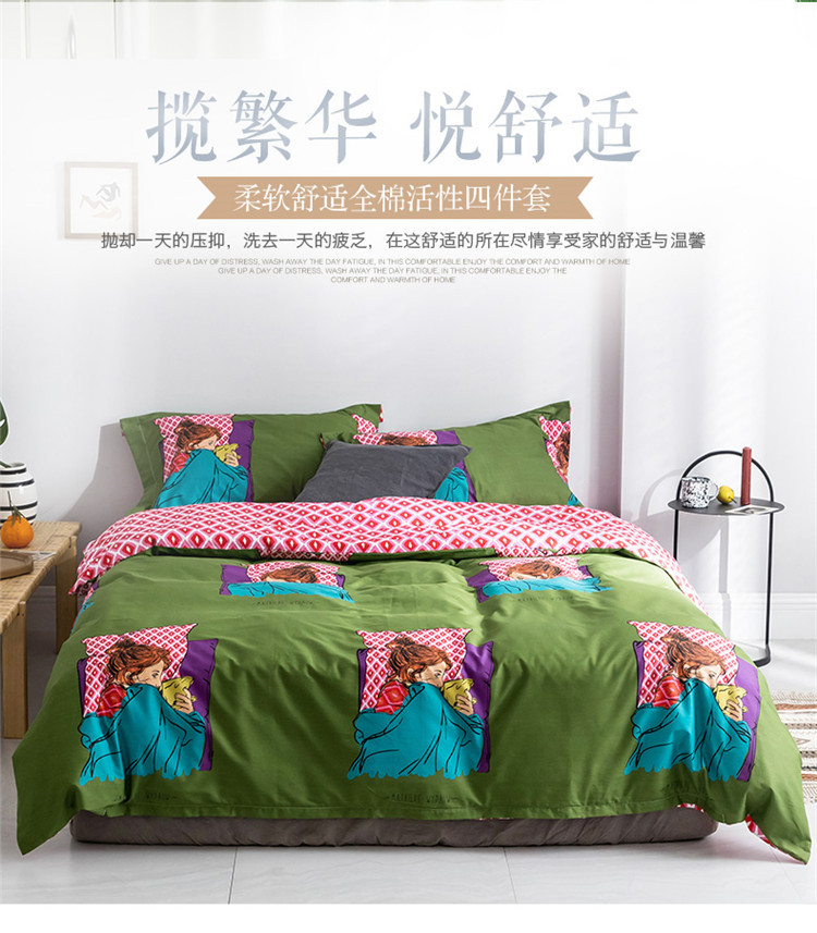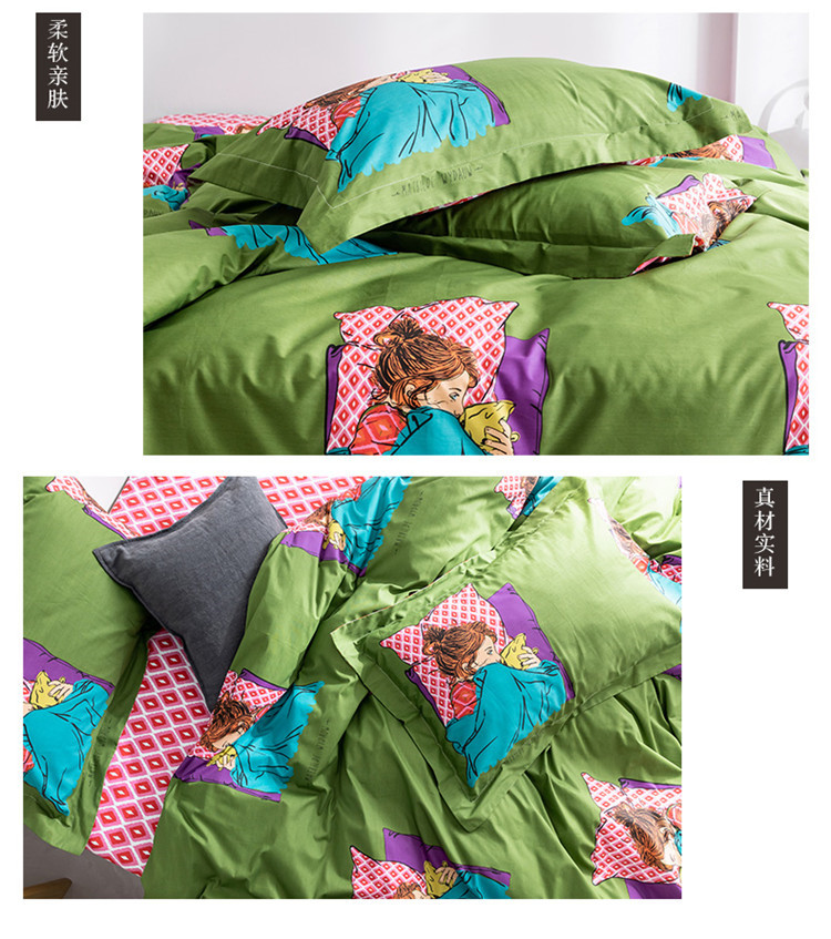 窝米 2019全棉13372减龄卡通系列四件套床单款 晚晚