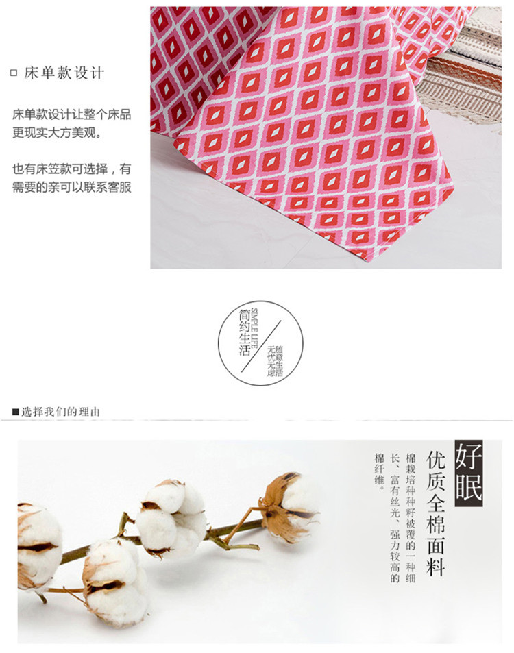 窝米 2020春夏新品全棉13372四件套小波西风系列草莓酱,草莓酱