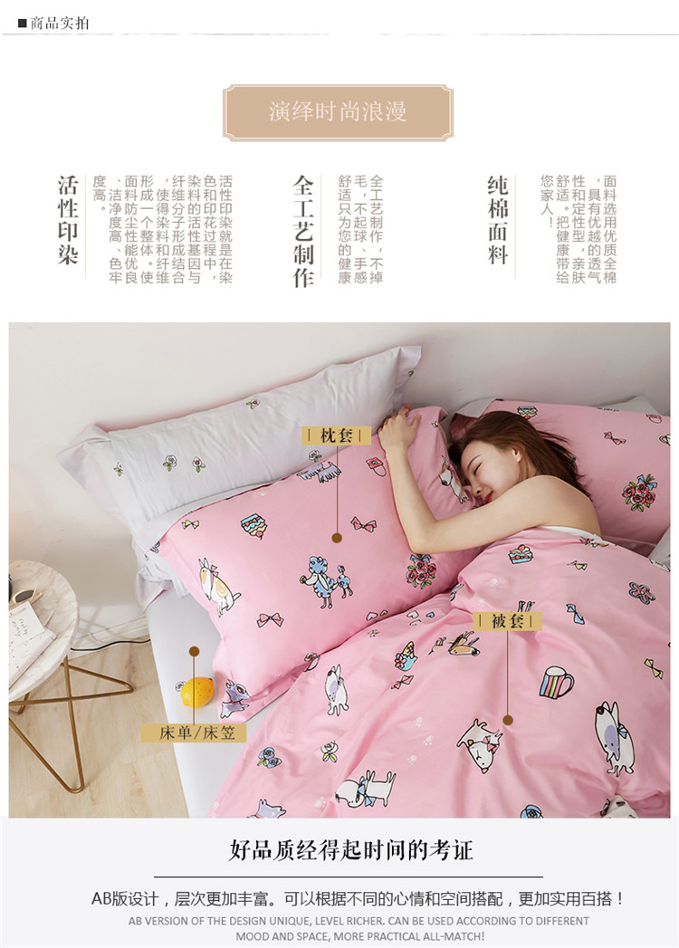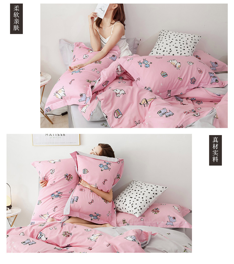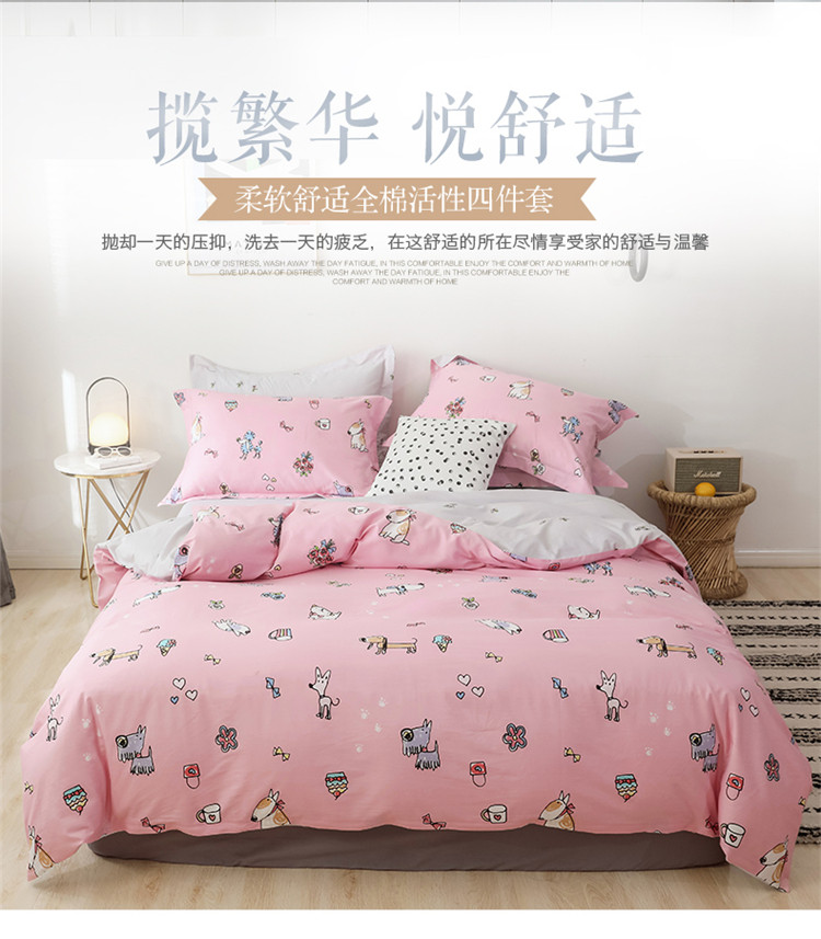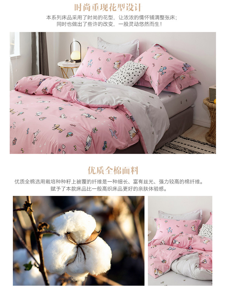 商品名称:窝米 2019全棉13372卡通花卉系列四件套床单款 牛头狗
