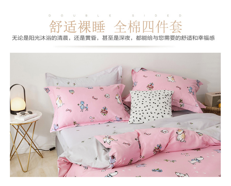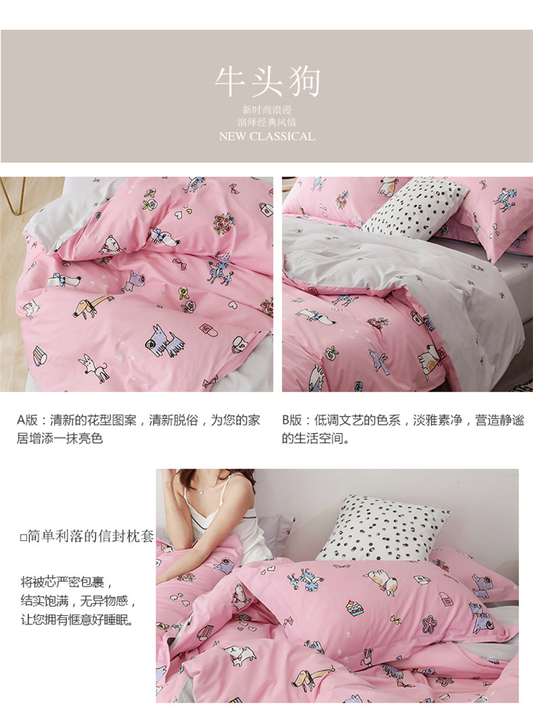窝米 2019全棉13372卡通花卉系列四件套床单款 牛头狗