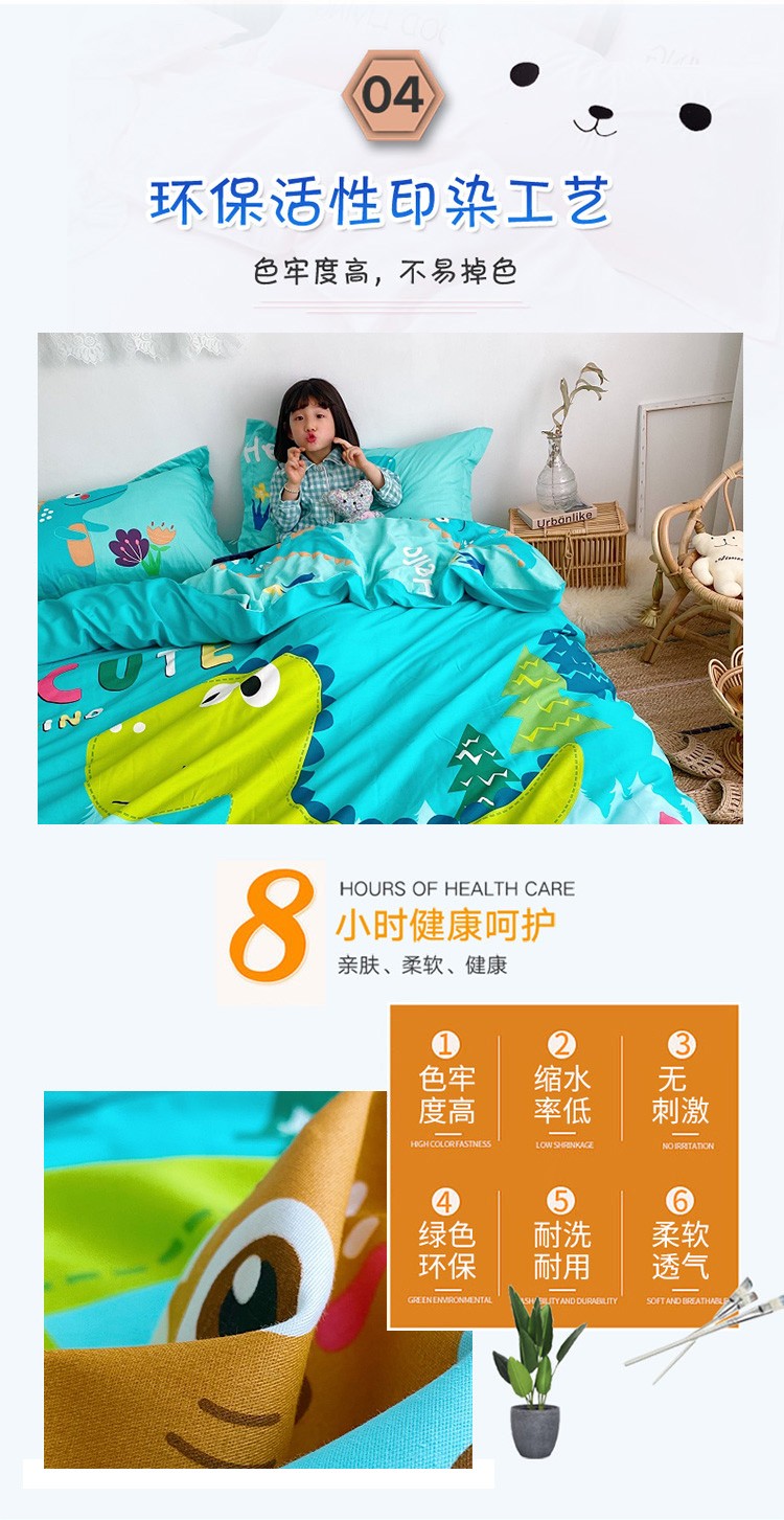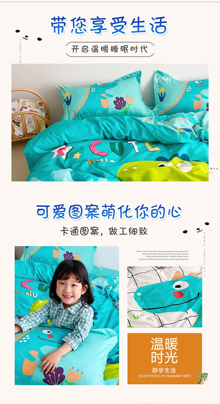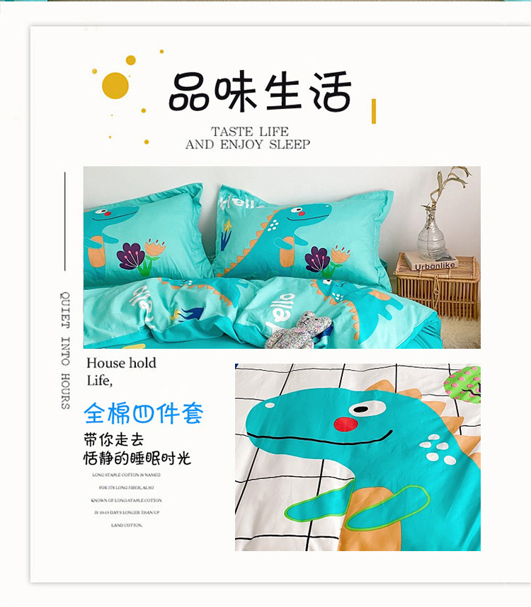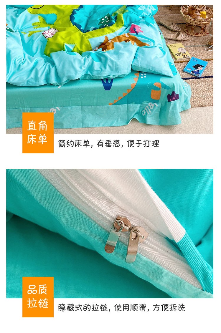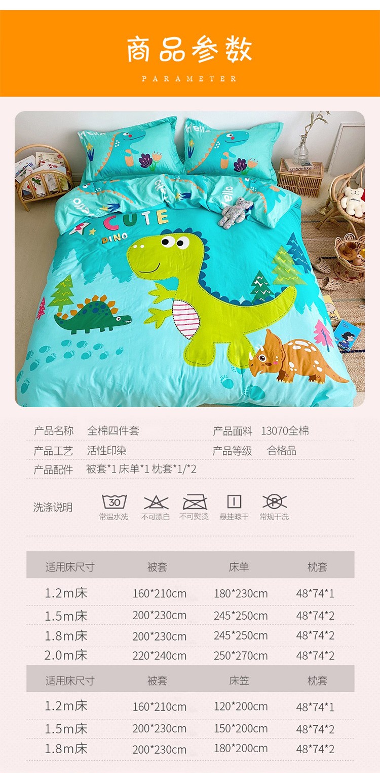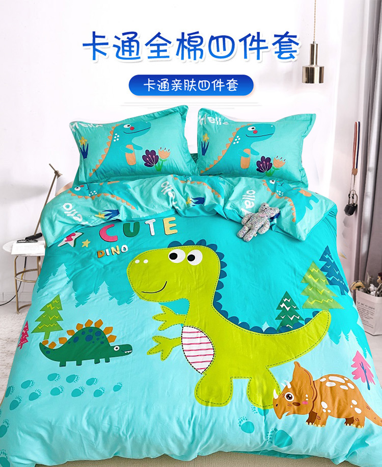 当前位置: 91家纺网 > 商品网购 > 床品套件 > 四件套 > 全棉普通四件套 > 金爱家家纺 2021新款童梦系列大版卡通全棉四件套 独家恐龙森林绿