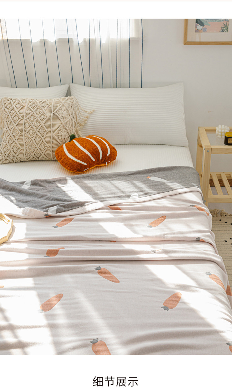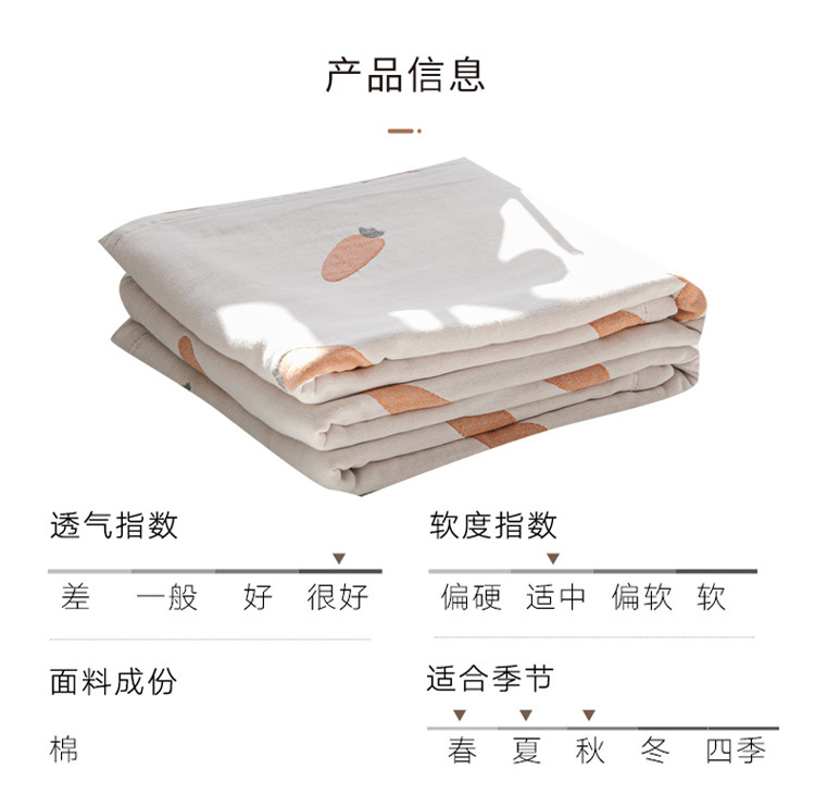 商品名称:朴尔 2020年新款水果系列四层纱布毛巾被 悠然胡萝卜-米灰