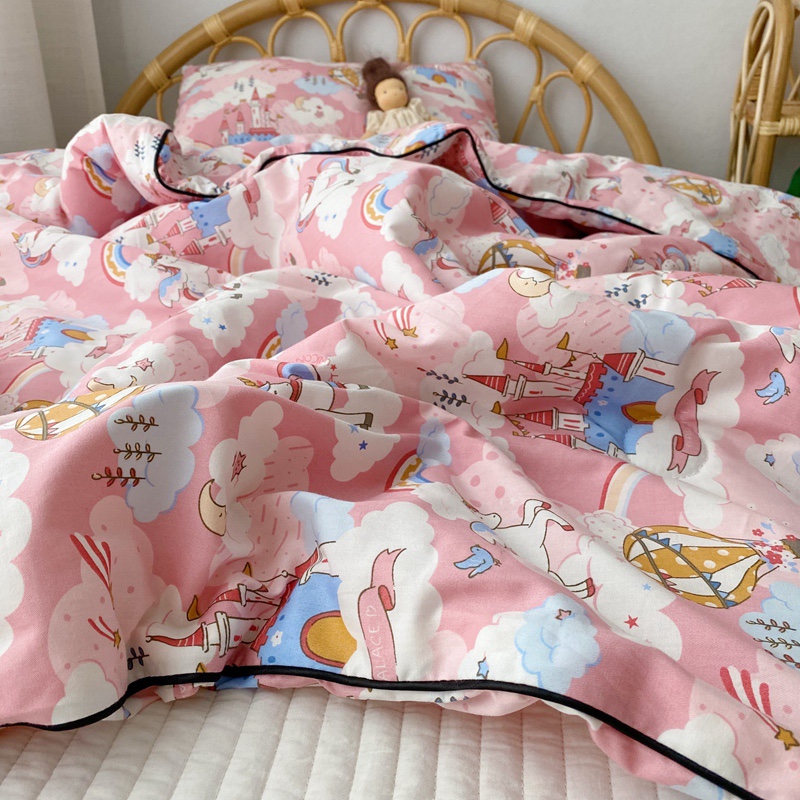 (总)星期八 2025新款全棉双层纱花边豆豆被四件套,夕雾,彩色蝴蝶结,丁香,风铃,狗狗乐园,蝴蝶结蓝,快乐狗狗,玫瑰,莫奈,木马,森林兔,碎花兔,小王子,小樱桃,紫鸢,组合