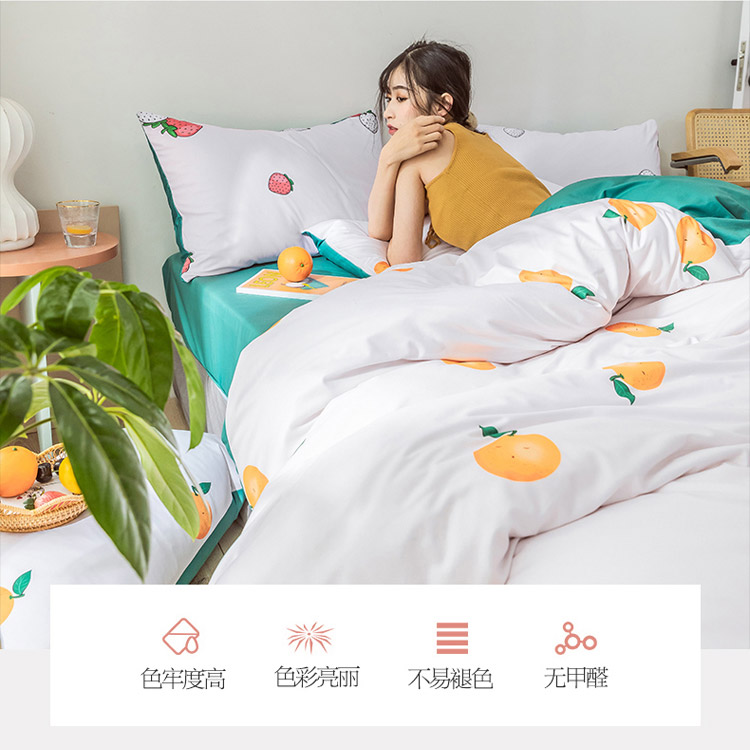 商品名称:爱缦 2020日系针织棉数码小版印花四件套 香甜鲜橙