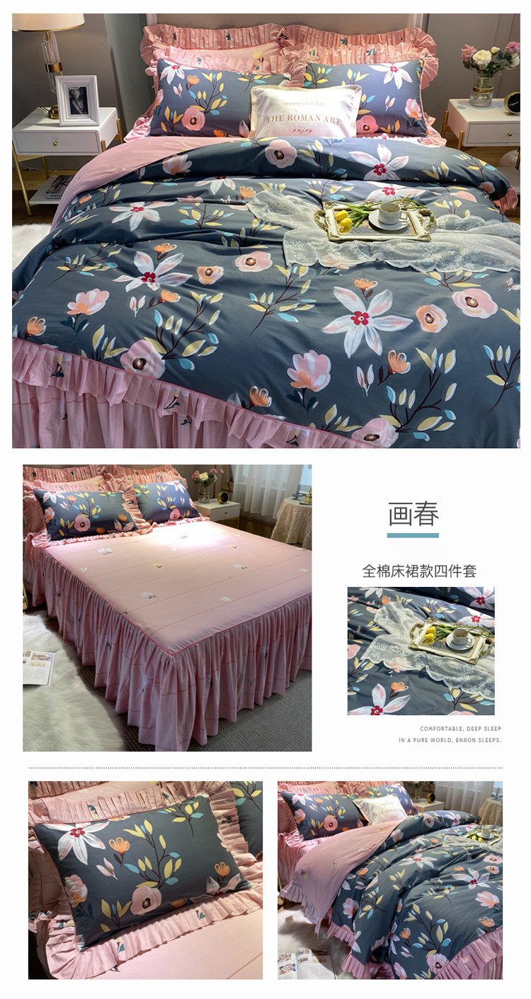 (总)菊上家纺 2023秋冬新品法式花边全棉床盖四件套,安妮紫,花千骨,小欢喜,布拉格,罗蔓莉,玛雅灰,小幸运,卡町绿,恋花影,薇薇安