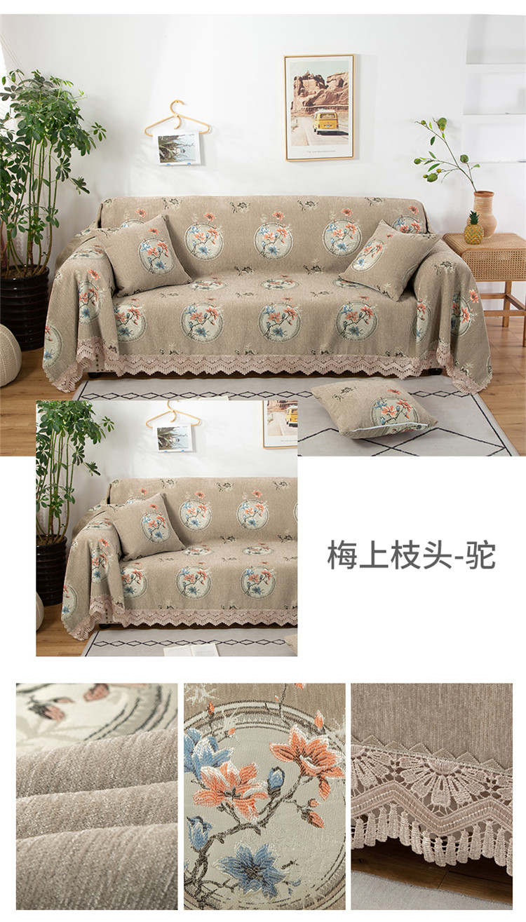启博家纺 2022欧式简约全盖雪尼尔沙发巾沙发垫沙发套沙发罩 清香疏影,清香疏影,45*45cm抱枕套